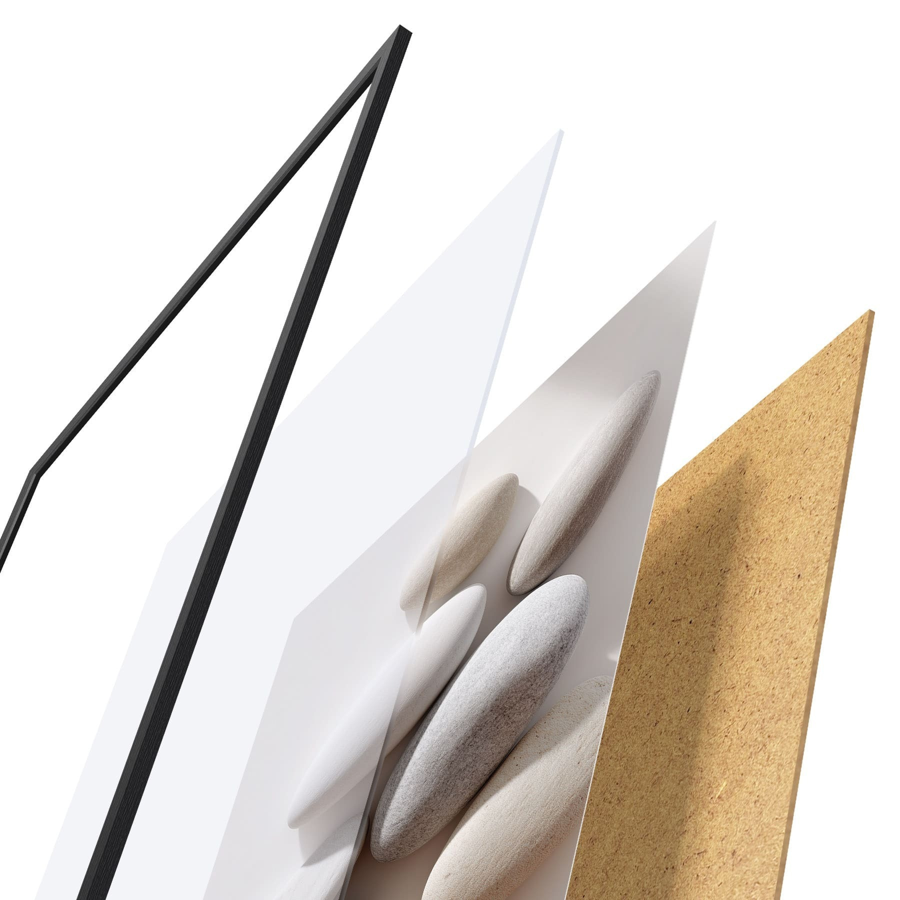 Il poster è composto da cornice, plexiglass, immagine stampata e supporto in truciolato. Il poster può essere immediatamente appeso alla parete grazie ai supporti sul retro.