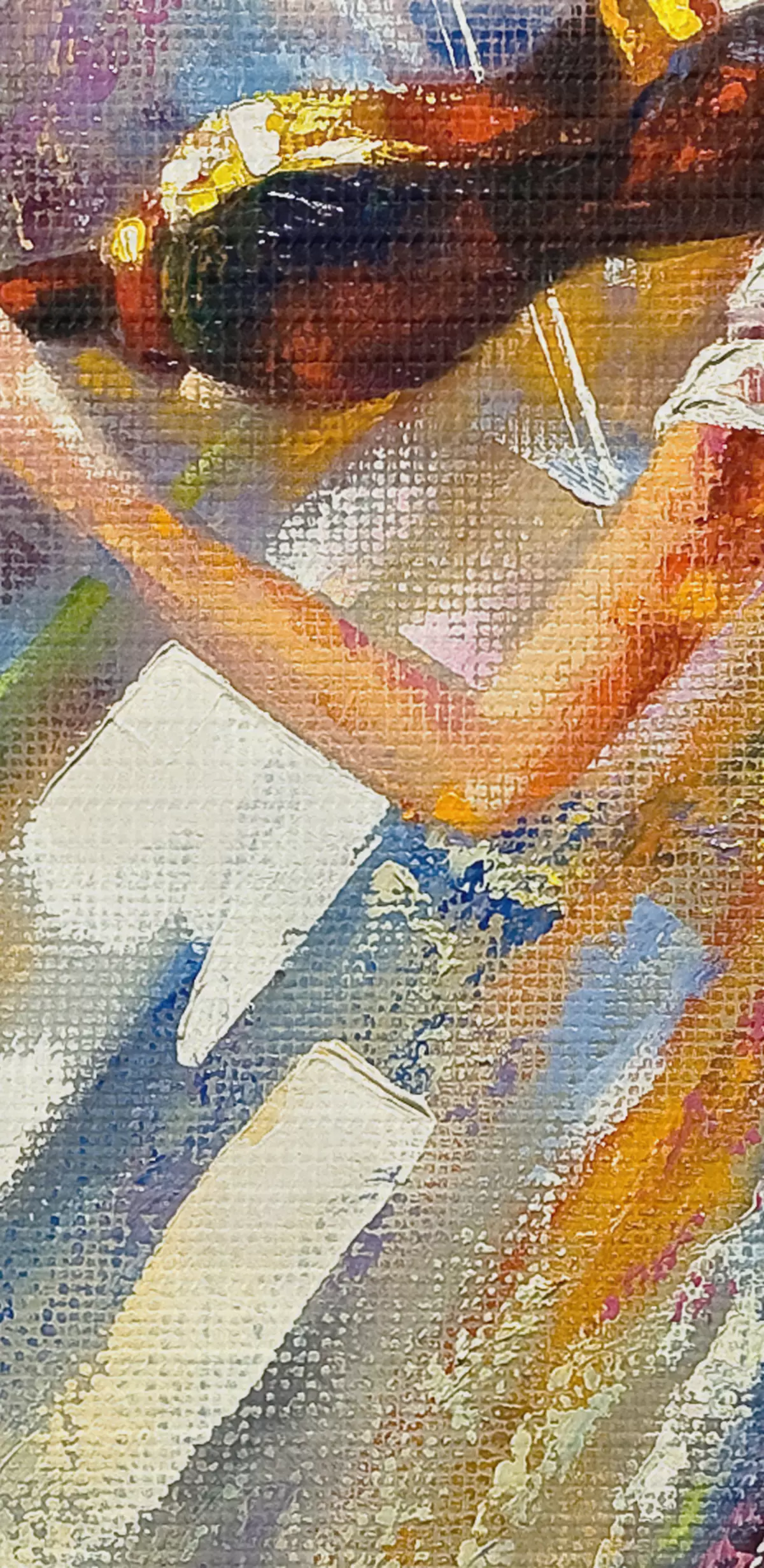 La verniciatura crea un ulteriore strato protettivo sulla tela. Il quadro sarà più resistente ai piccoli danni e per rinfrescarlo si può passare un panno morbido e leggermente umido.