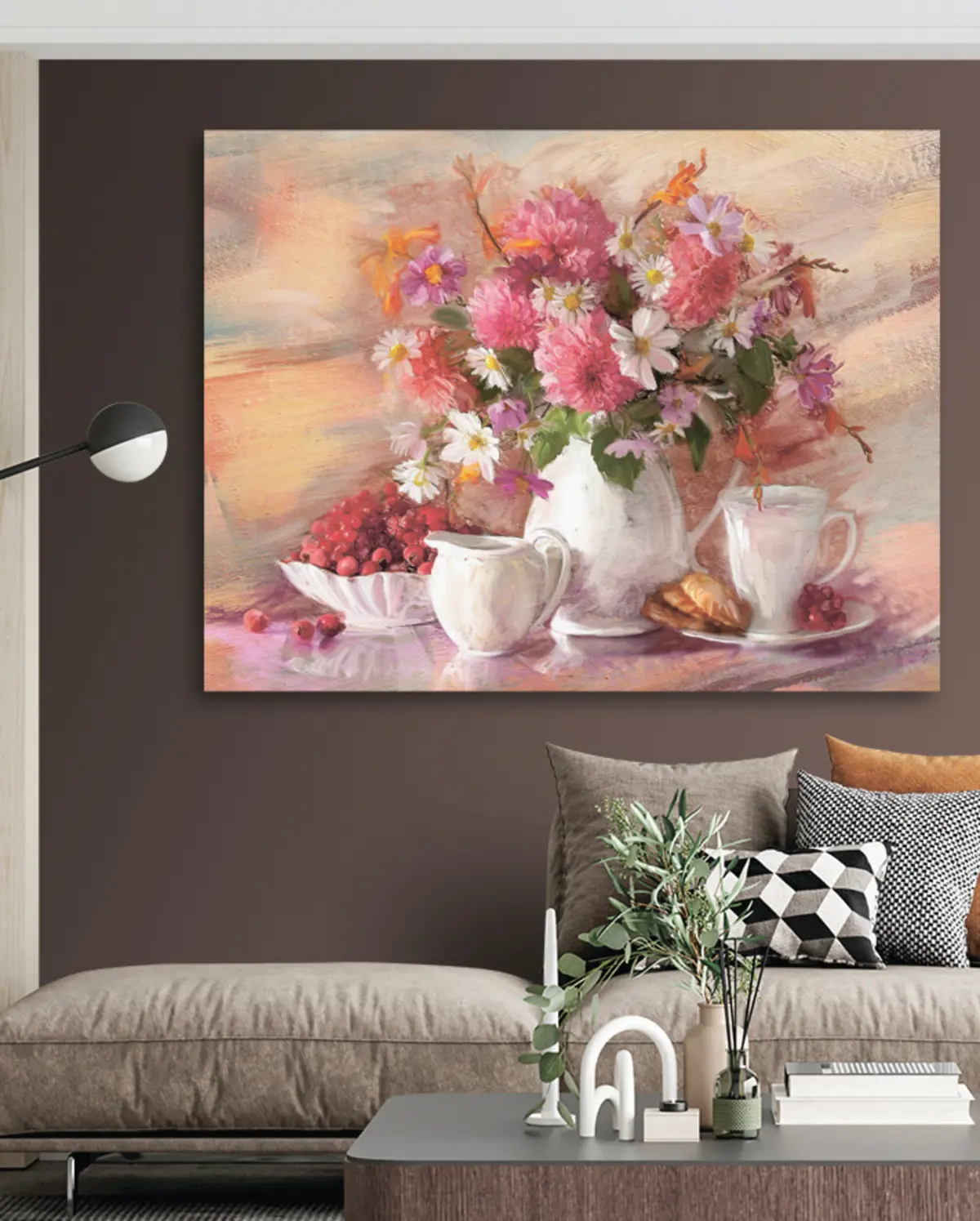 La verniciatura crea un ulteriore strato protettivo sulla tela. Il quadro sarà più resistente ai piccoli danni e per rinfrescarlo si può passare un panno morbido e leggermente umido.