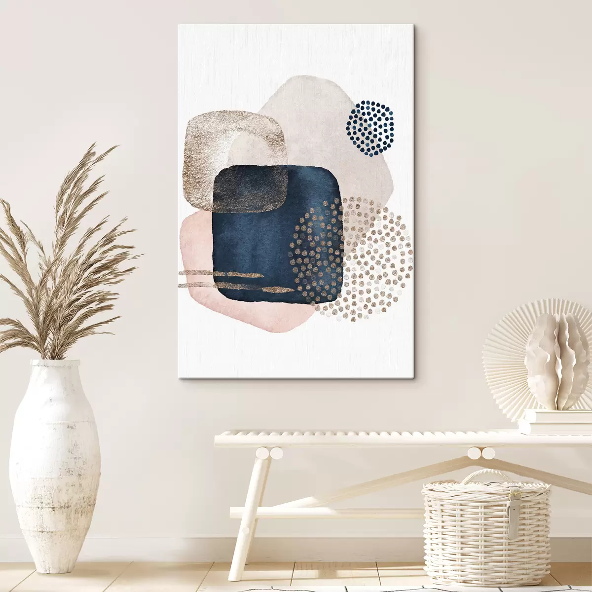 Quadri Fard beige e blu su sfondo bianco Nr s35989