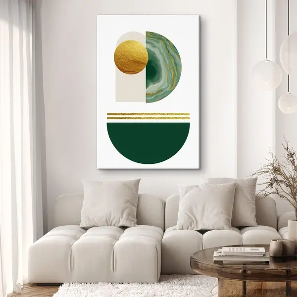 Quadri Semicerchi geometrici verdi e cerchio giallo Nr s35986