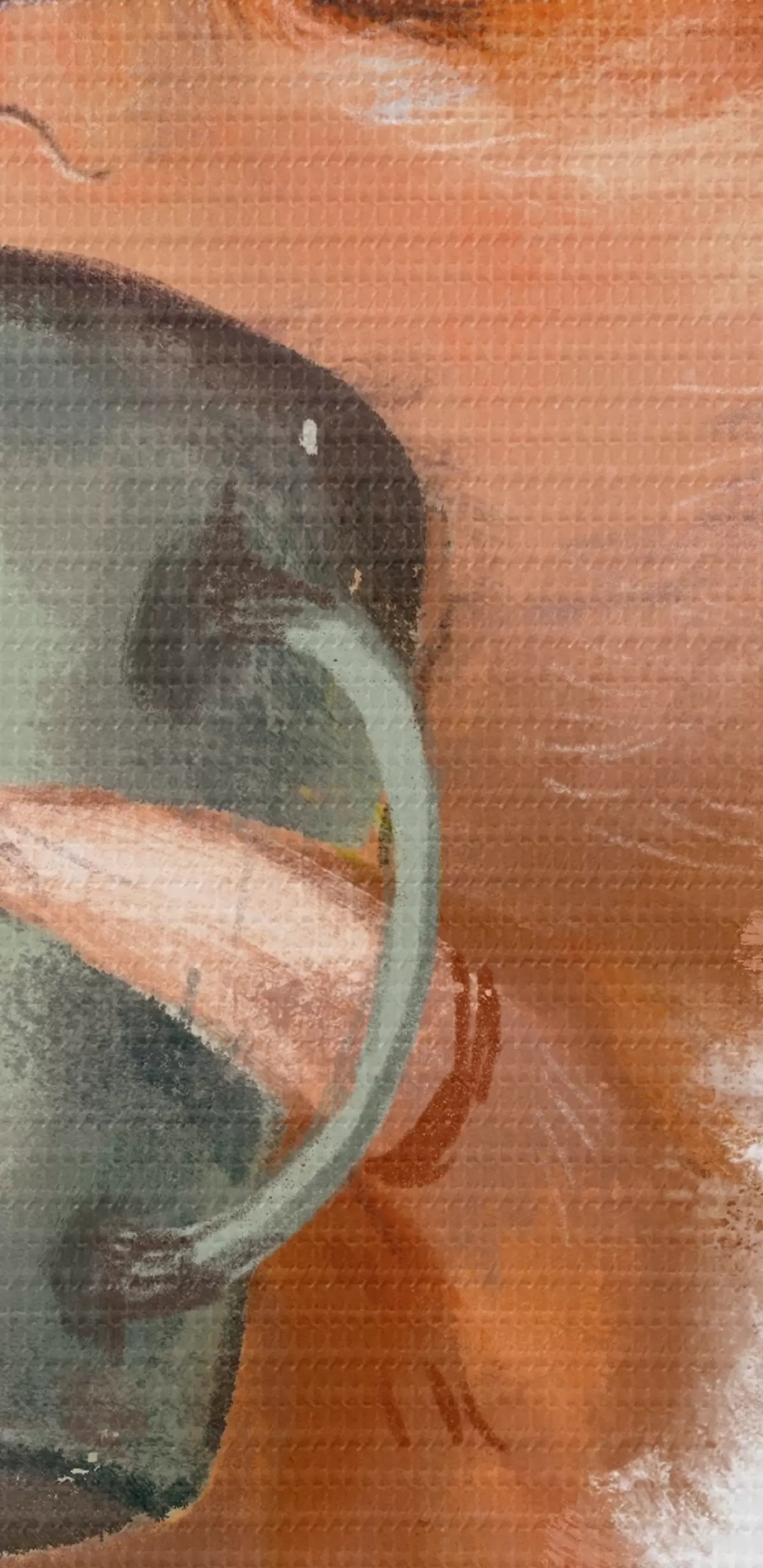 La fine trama dei fili di questa tela ricorda la superficie delle tele degli artisti professionisti.