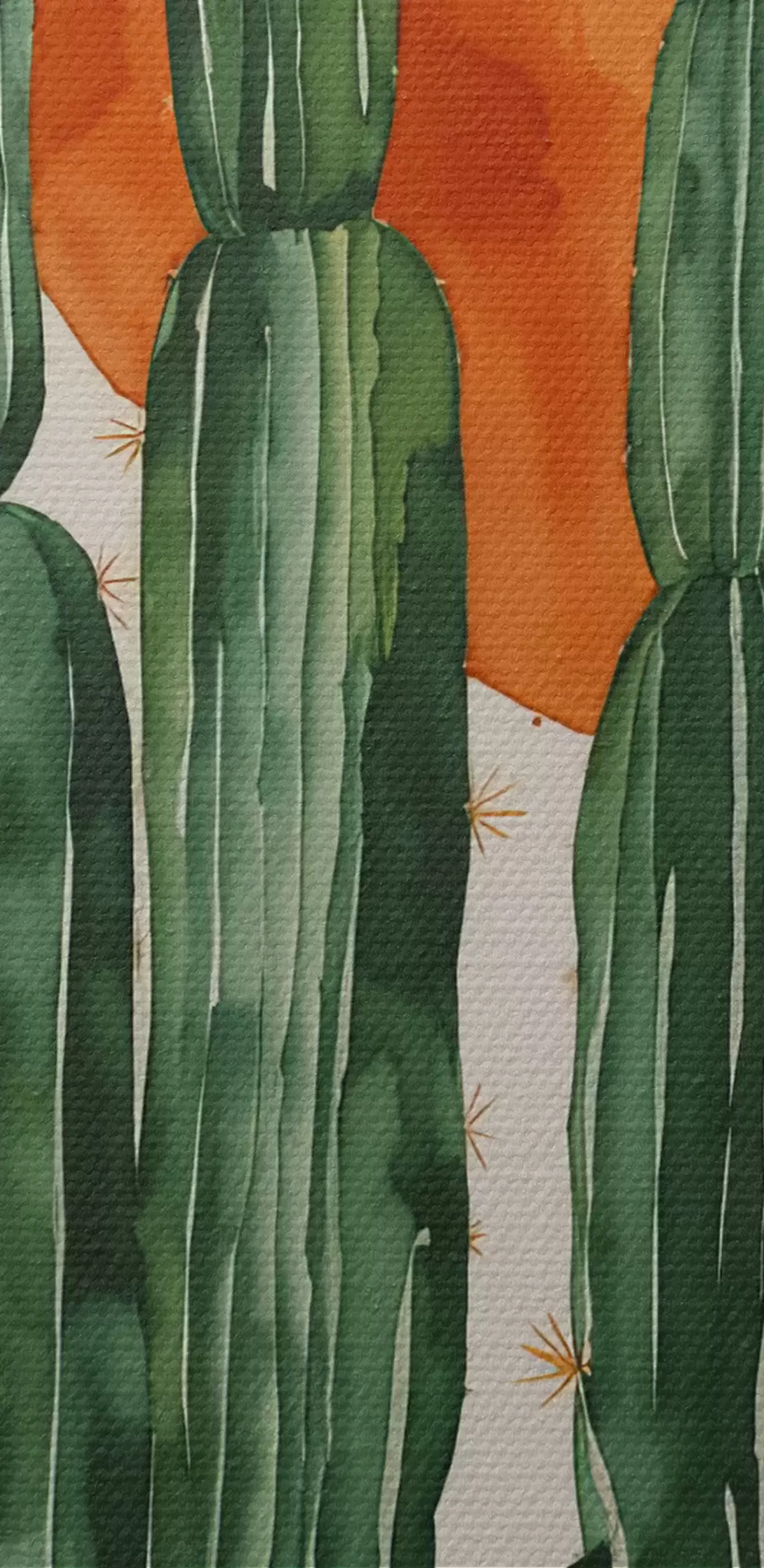 Quadri Cactus nel deserto contro il sole in acquerello Nr s36269