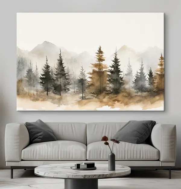 Quadri Acquerello di un abete su uno sfondo di montagna Nr s36010