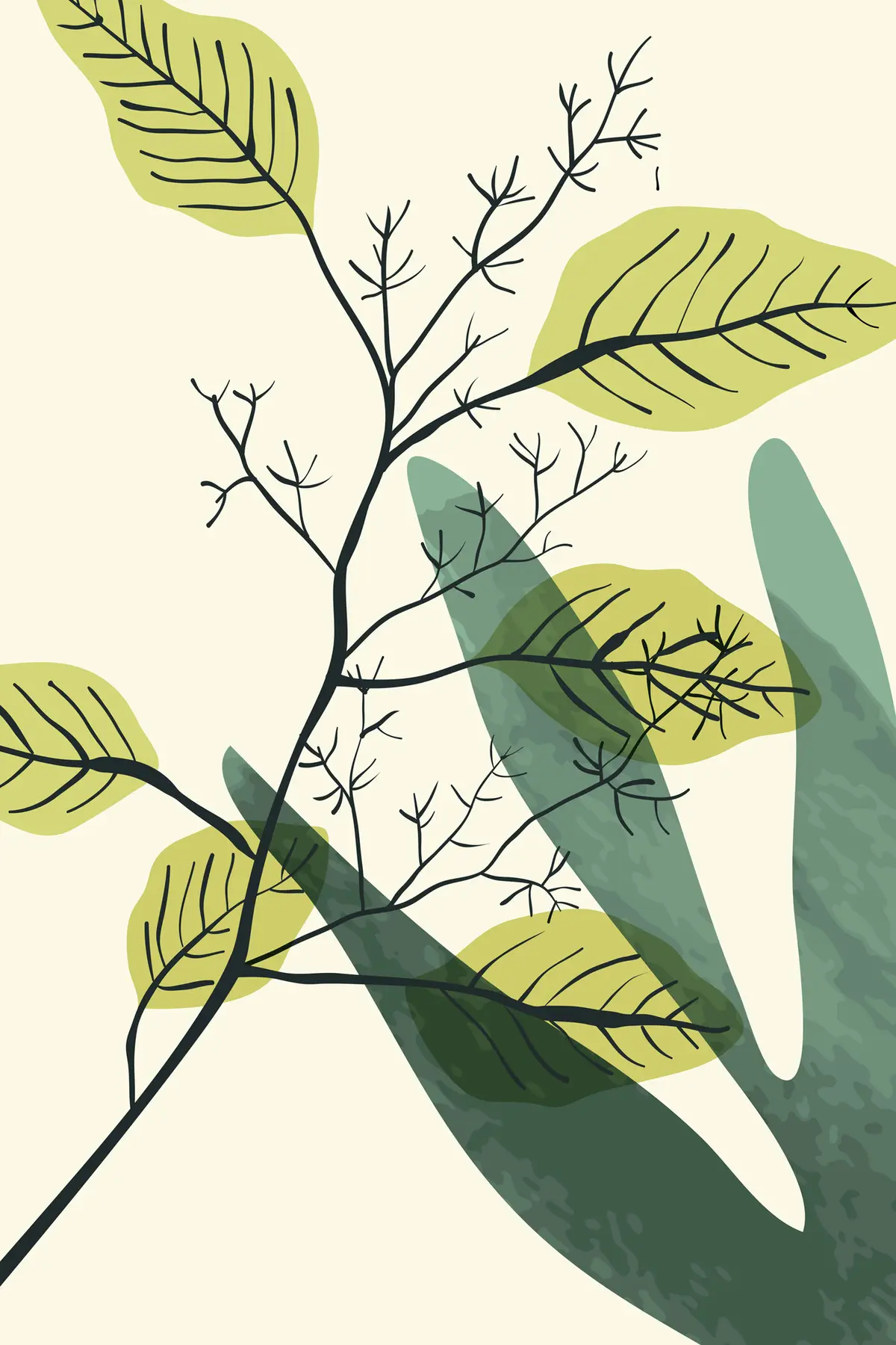 Quadri Acquerello di un ramo con foglie gialle Nr s36134