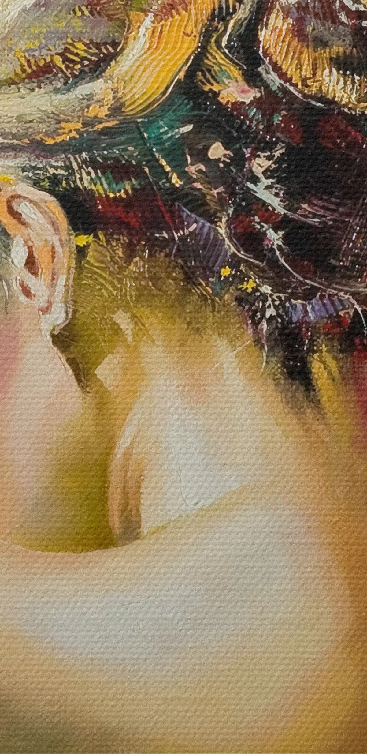 La fine trama dei fili di questa tela ricorda la superficie delle tele degli artisti professionisti.