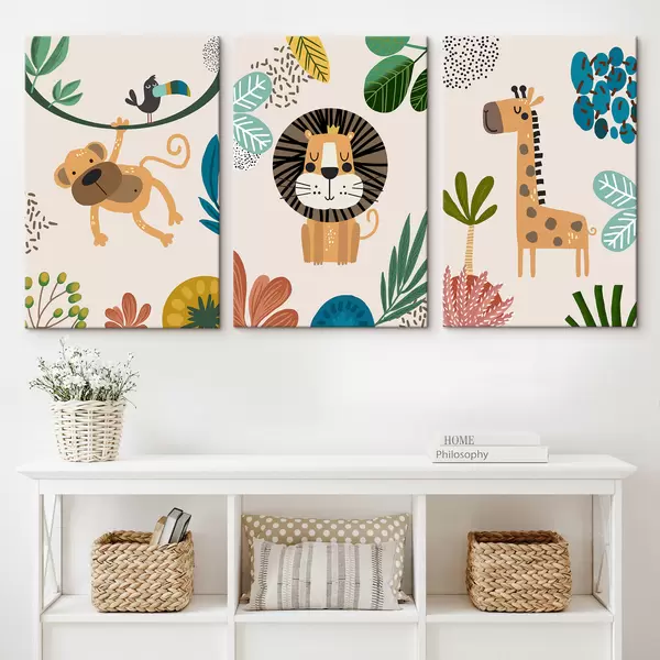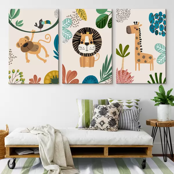 Quadri Animali nella giungla in stile safari, boho: scimmia, leone, giraffa Nr m00332