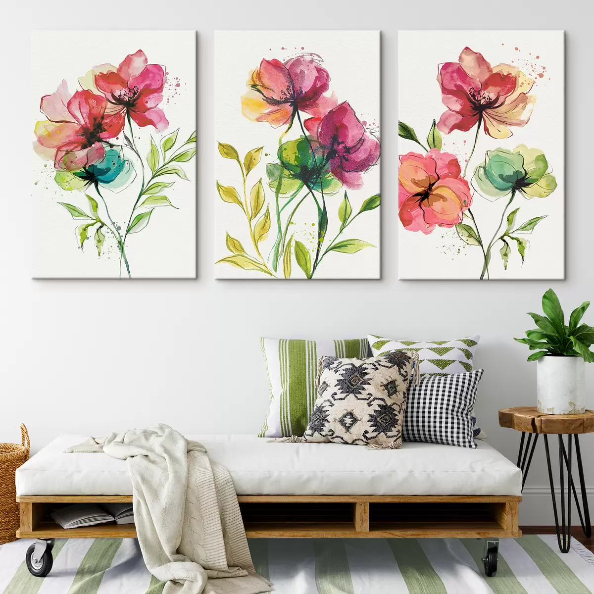 Quadri Delicati fiori ad acquerello con spruzzi di vernice Nr m00340