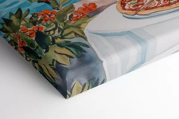 Quadri Lago di Como, brunch in Italia, stile acquarello, pizza margarita, natura estiva Nr m00406