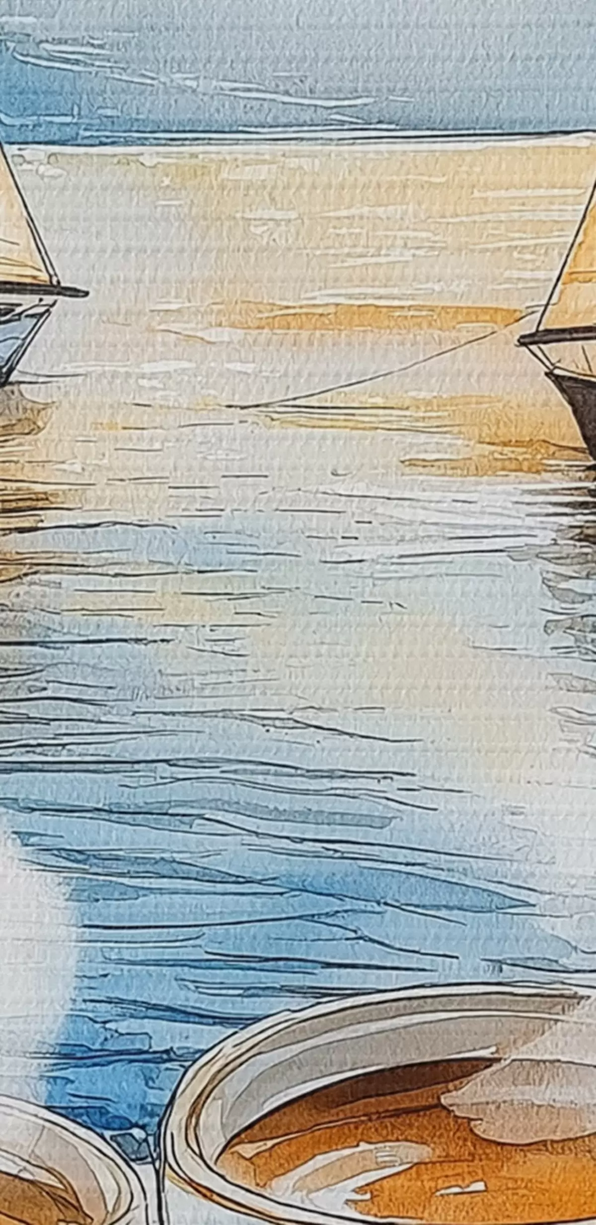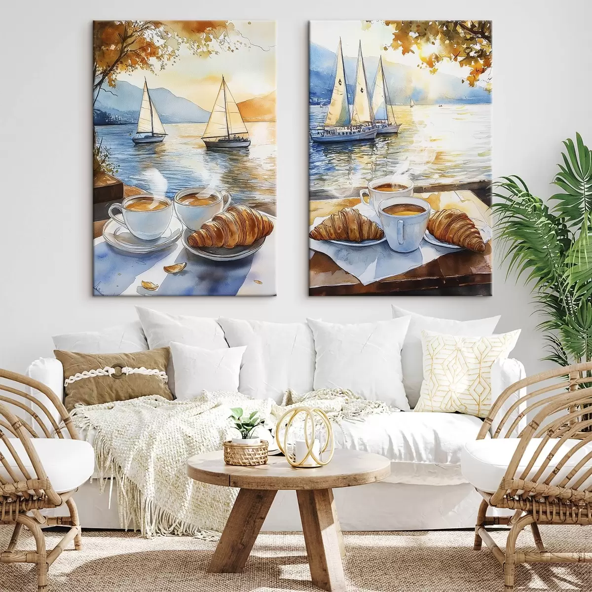 Quadri Tramonto sul lago con caffè, barche a vela, natura, viaggio Nr m00407