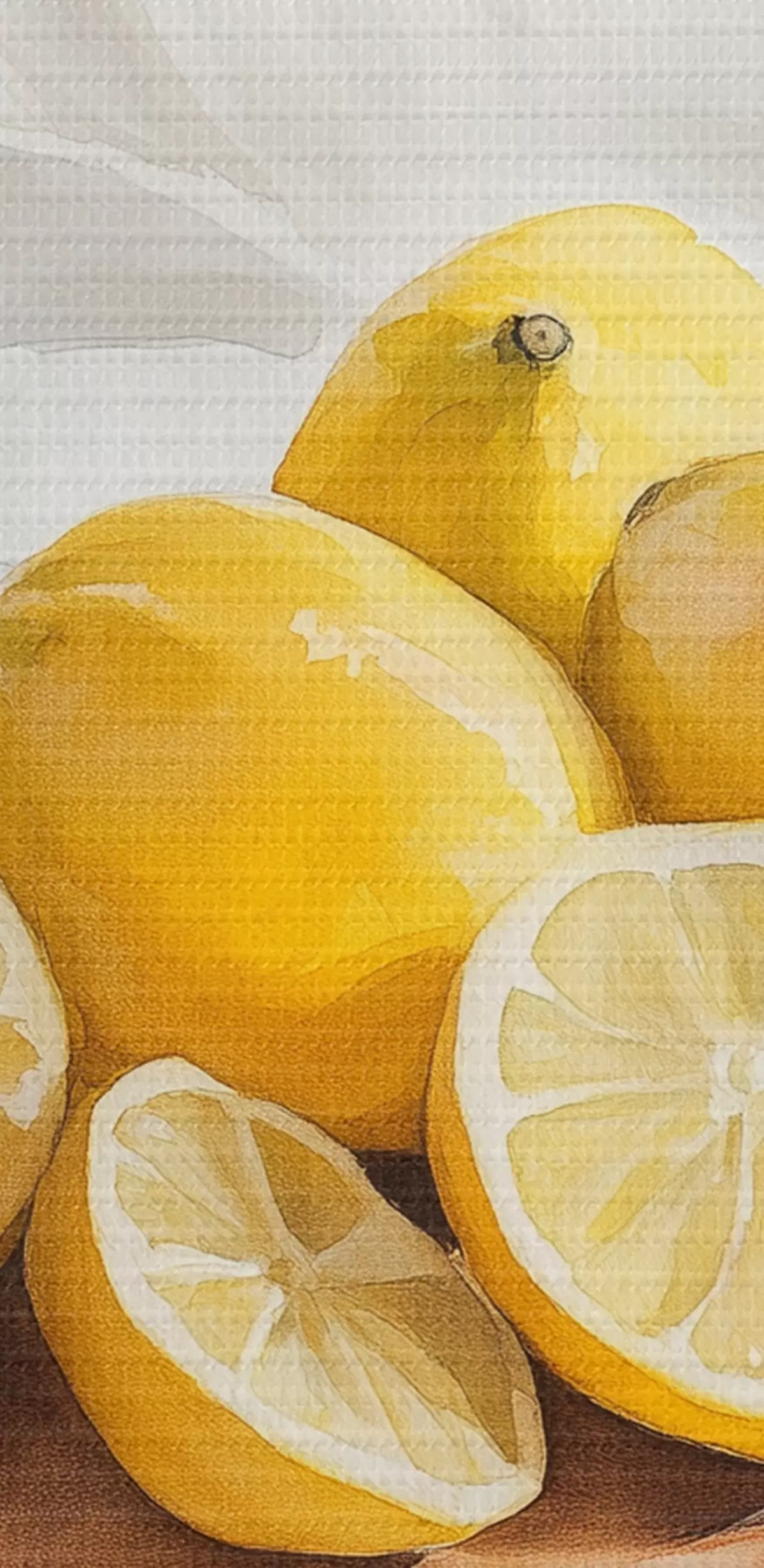 carta da parati Pancakes con burro di arachidi, limoni sulla tavola di legno, stile acquerello nr. m00416