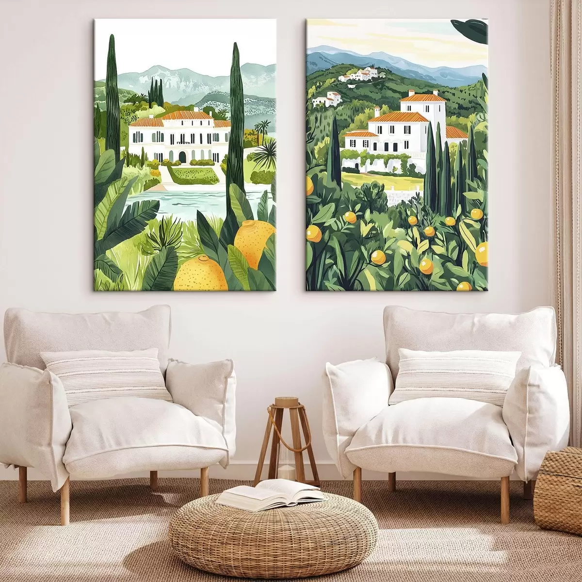 Quadri Paesaggi mediterranei con alberi e case, costa del mare, Spagna Nr m00450