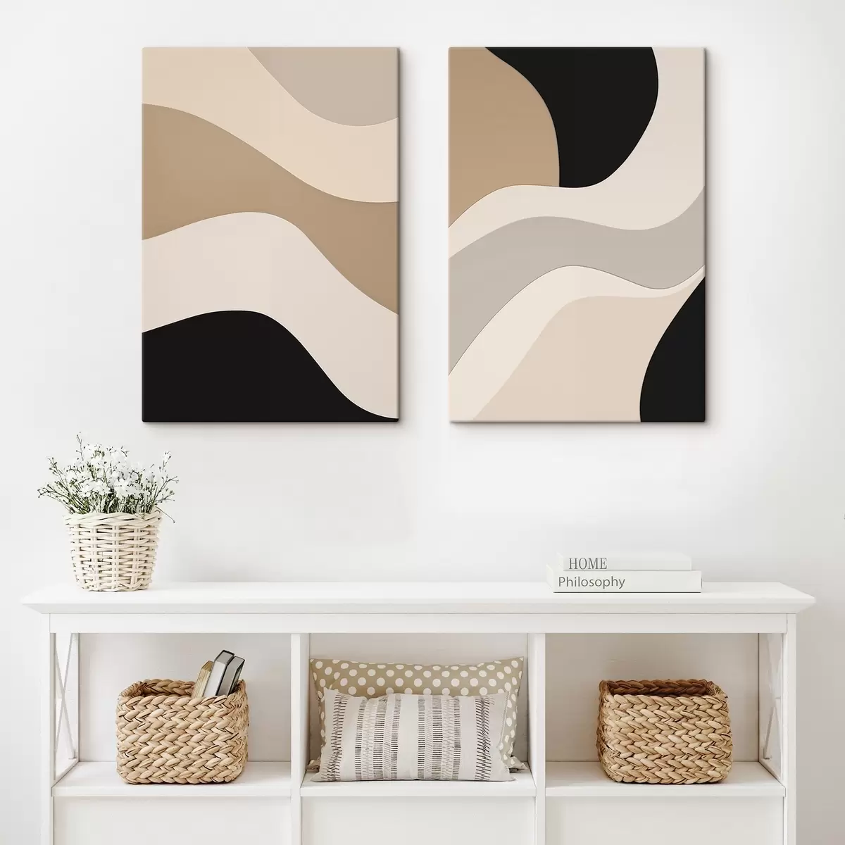 Quadri Onde astratte nei toni del beige e del nero Nr m00460