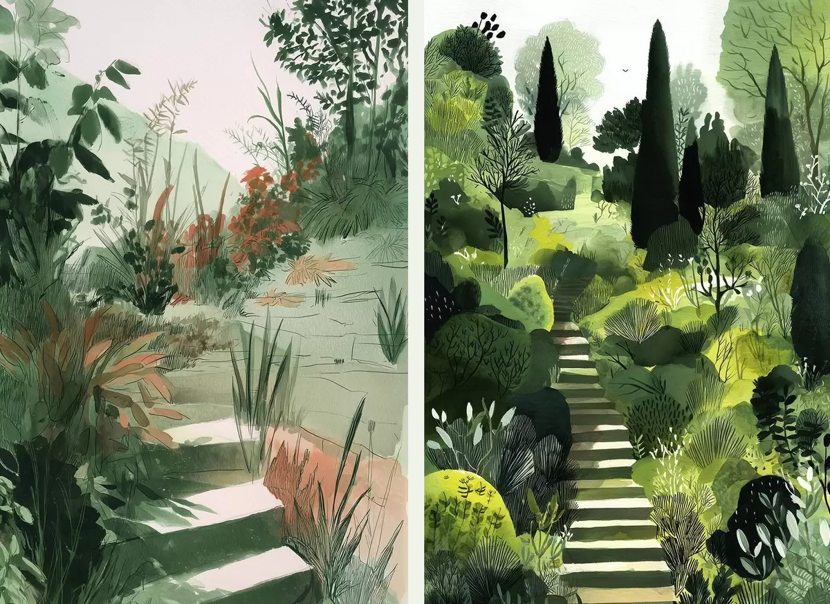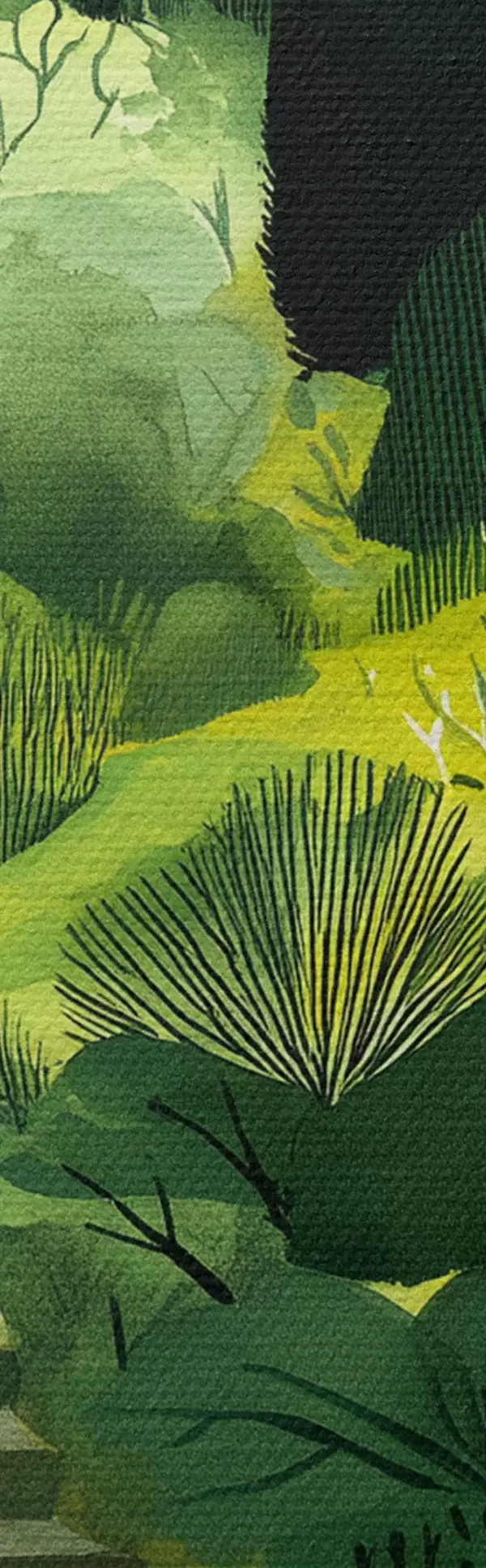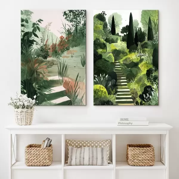 Quadri Giardino verde orientale con cespugli e alberi Nr m00478