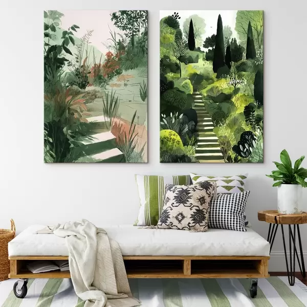 Quadri Giardino verde orientale con cespugli e alberi Nr m00478