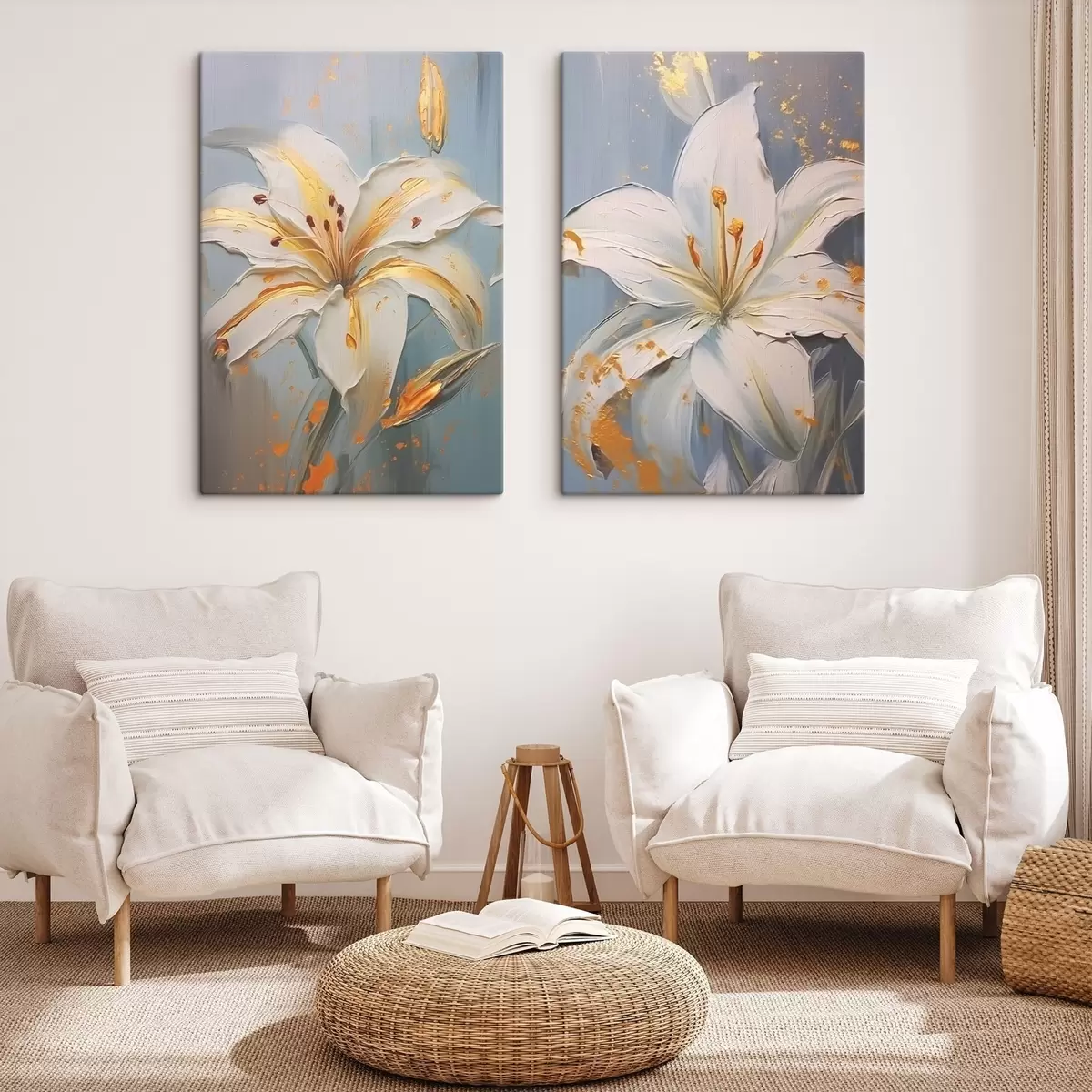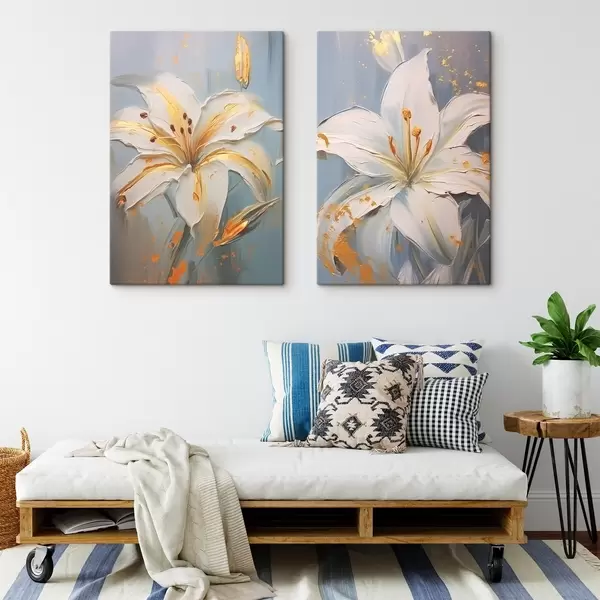 Quadri Gigli bianchi con tratti gialli su sfondo blu Nr m00497
