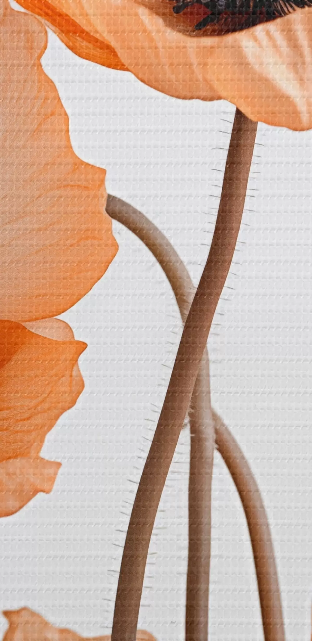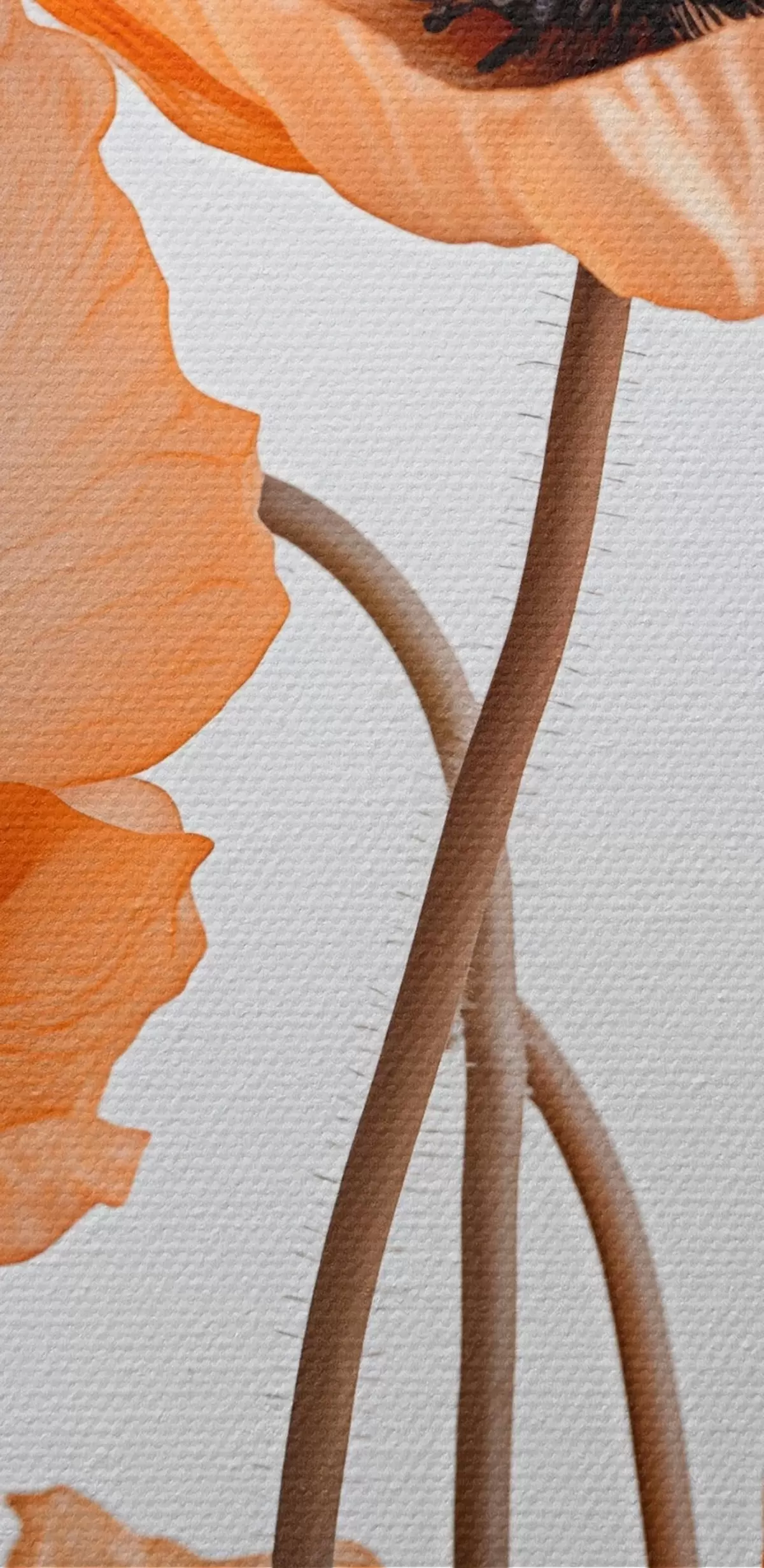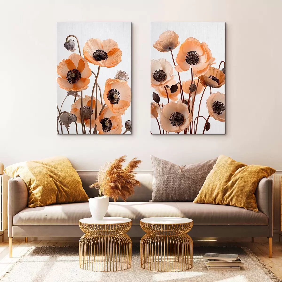 Quadri Papaveri arancioni, fiori secchi su sfondo chiaro, illuminazione soffusa, petali delicati, composizione floreale Nr m00518