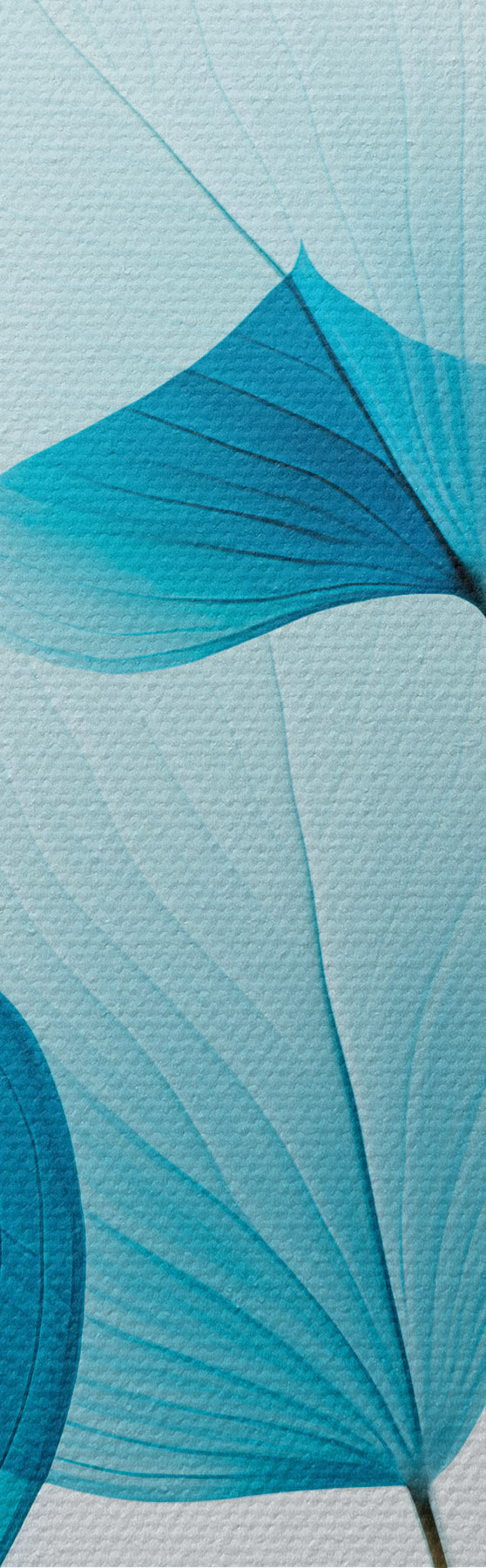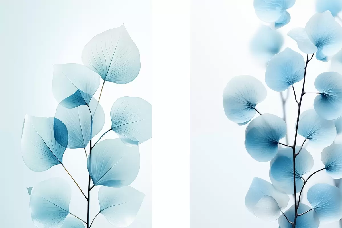 Quadri Ramo con foglie blu traslucide, con delicate venature visibili, composizione leggera e tranquilla, estetica minimalista Nr m00522