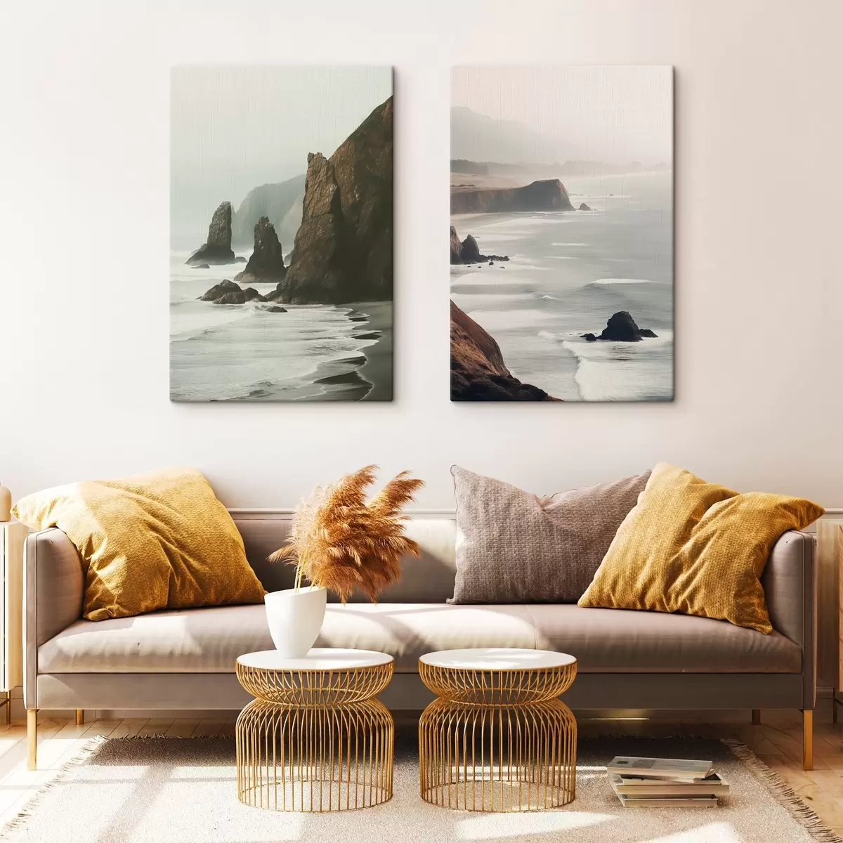 carta da parati Scogliere rocciose e costa marina, onde che si infrangono sulla riva, paesaggio dall'atmosfera lunatica, toni terrosi nr. m00531