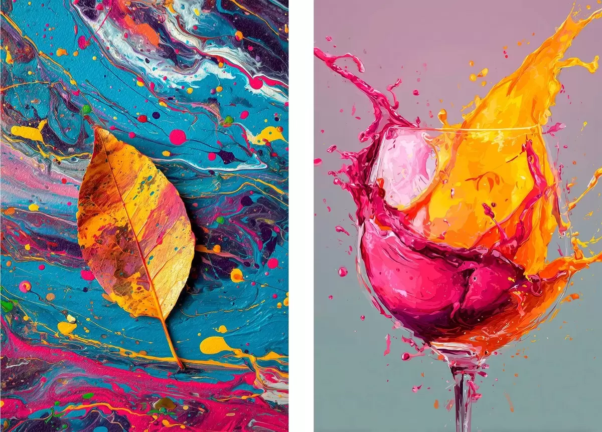 Quadri Astrazione espressiva con elementi della natura e bevande Nr m00570