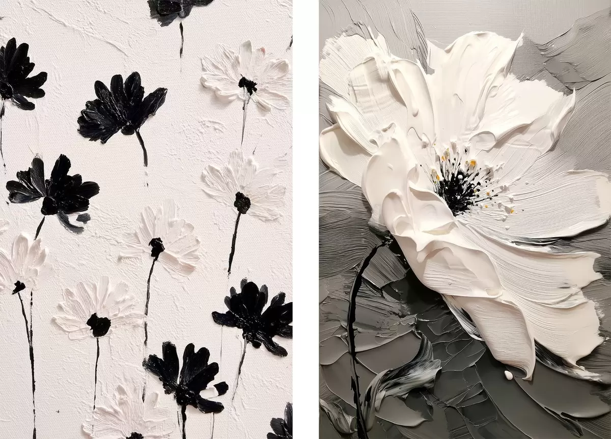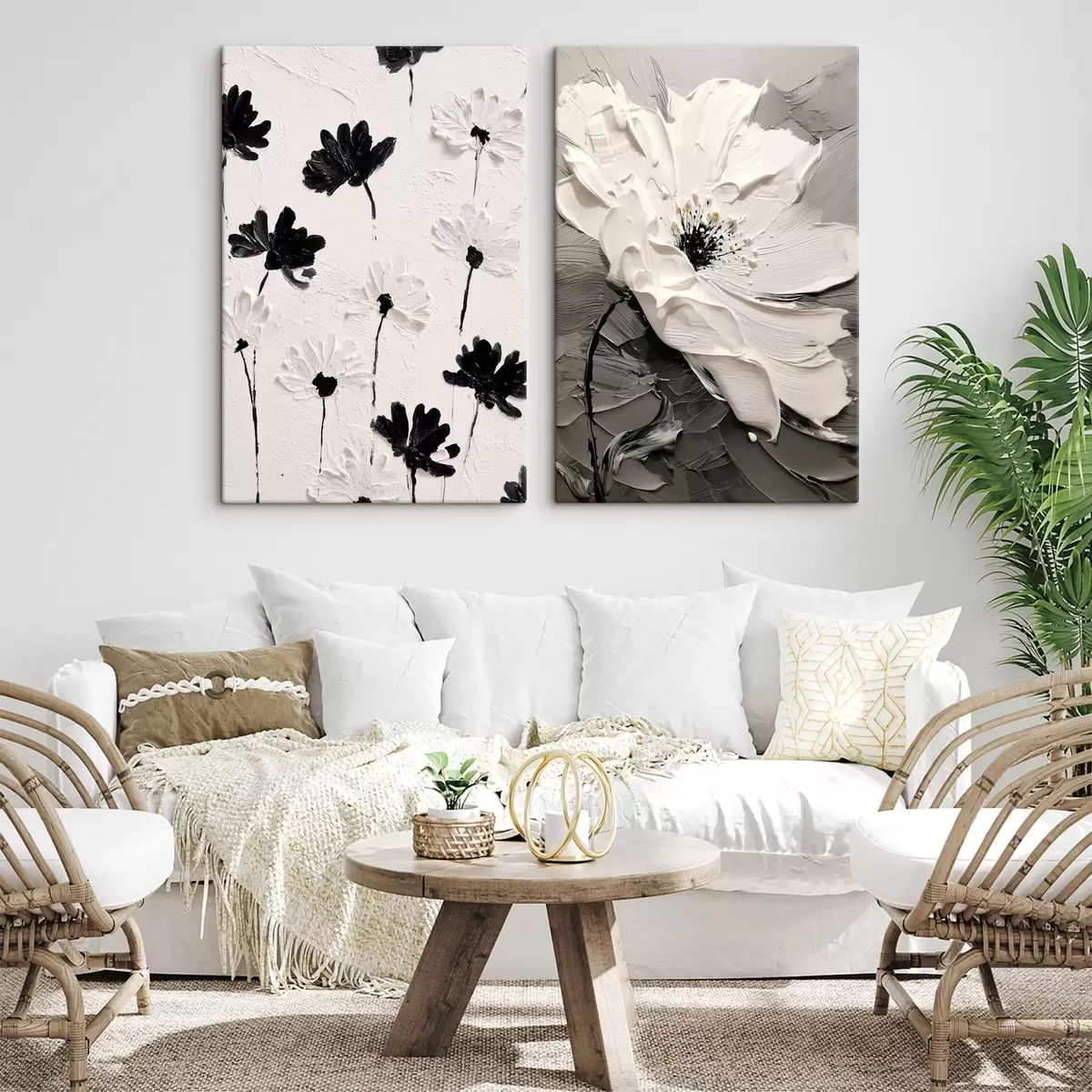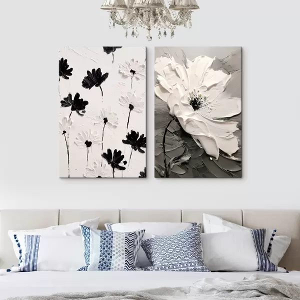 Quadri Dittico con fiori bianchi e neri in stile moderno Nr m00571