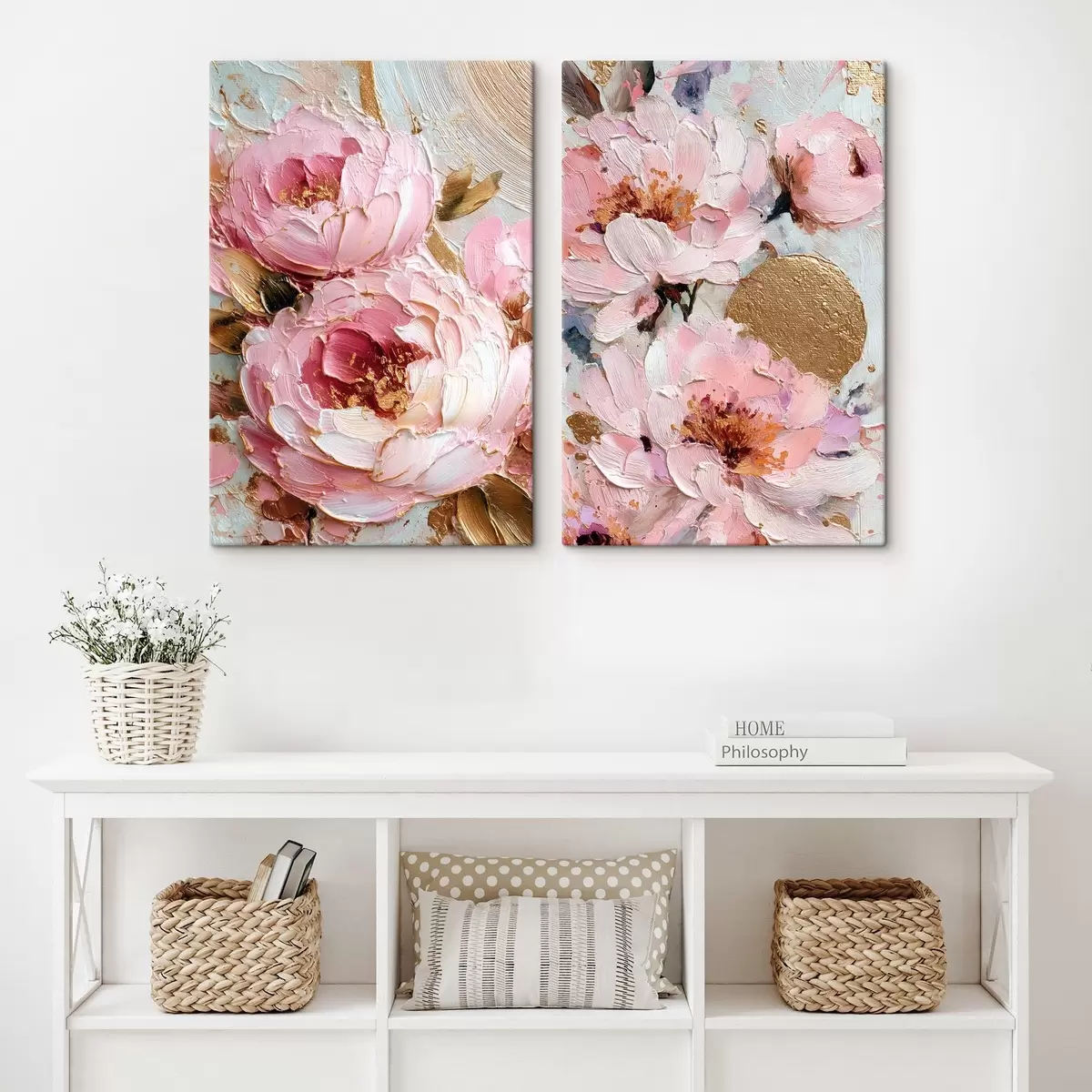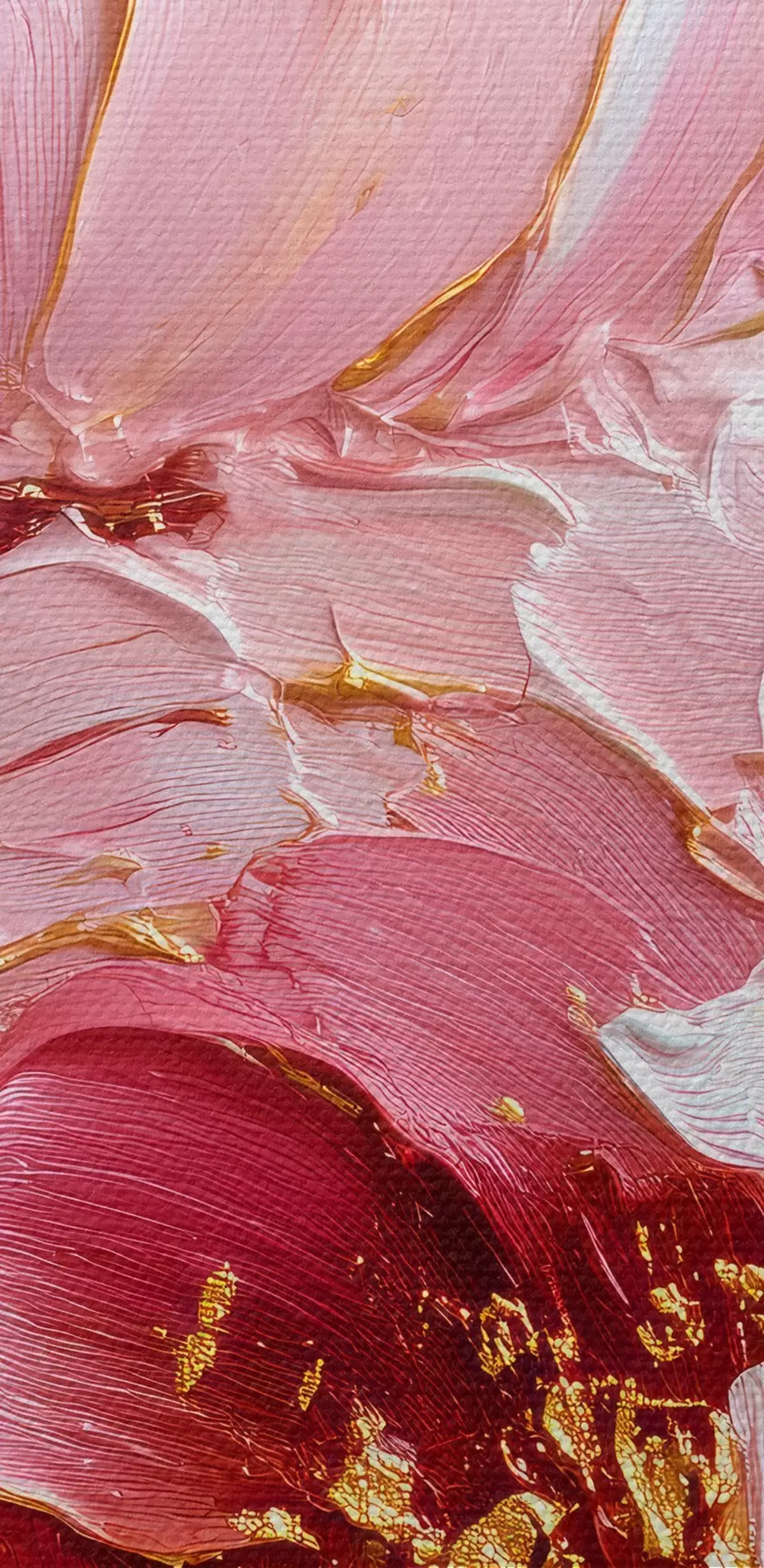 Quadri Pittura volumetrica ad impasto con peonie rosa e dettagli materici Nr m00573