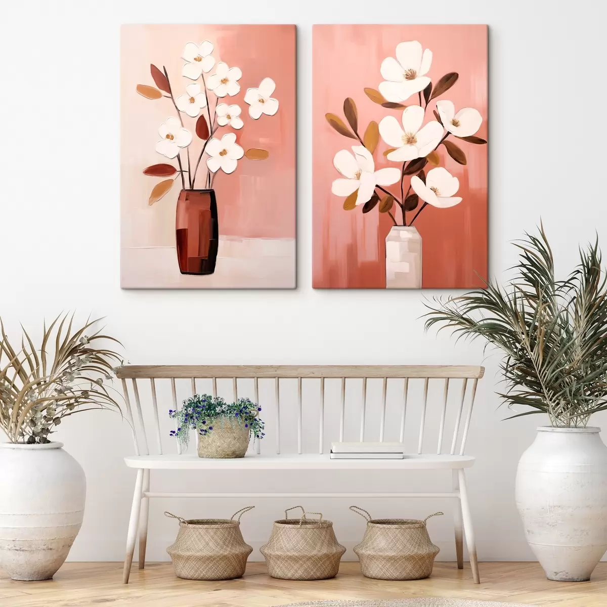 Quadri Composizione con vasi a contrasto e fiori bianchi strutturati Nr m00575