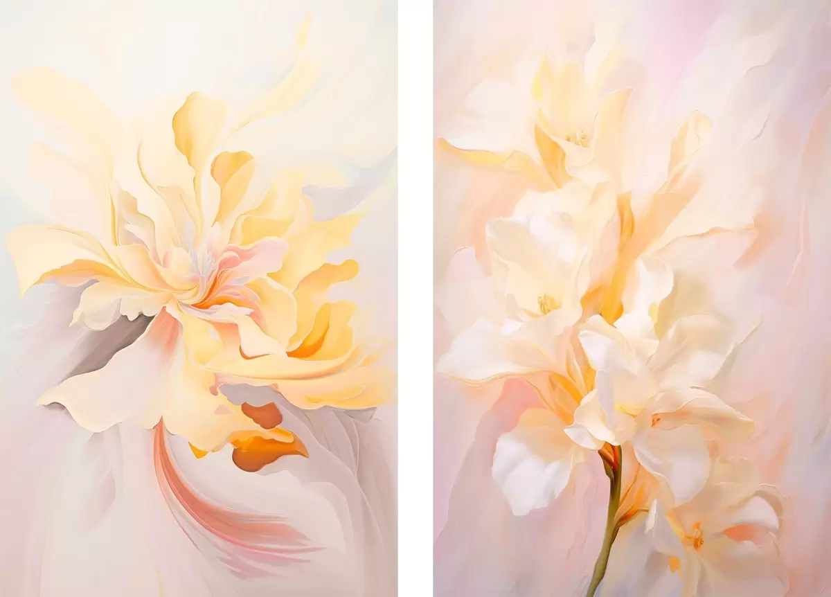 Quadri Delicato dittico in stile acquerello con transizioni di colore Nr m00576