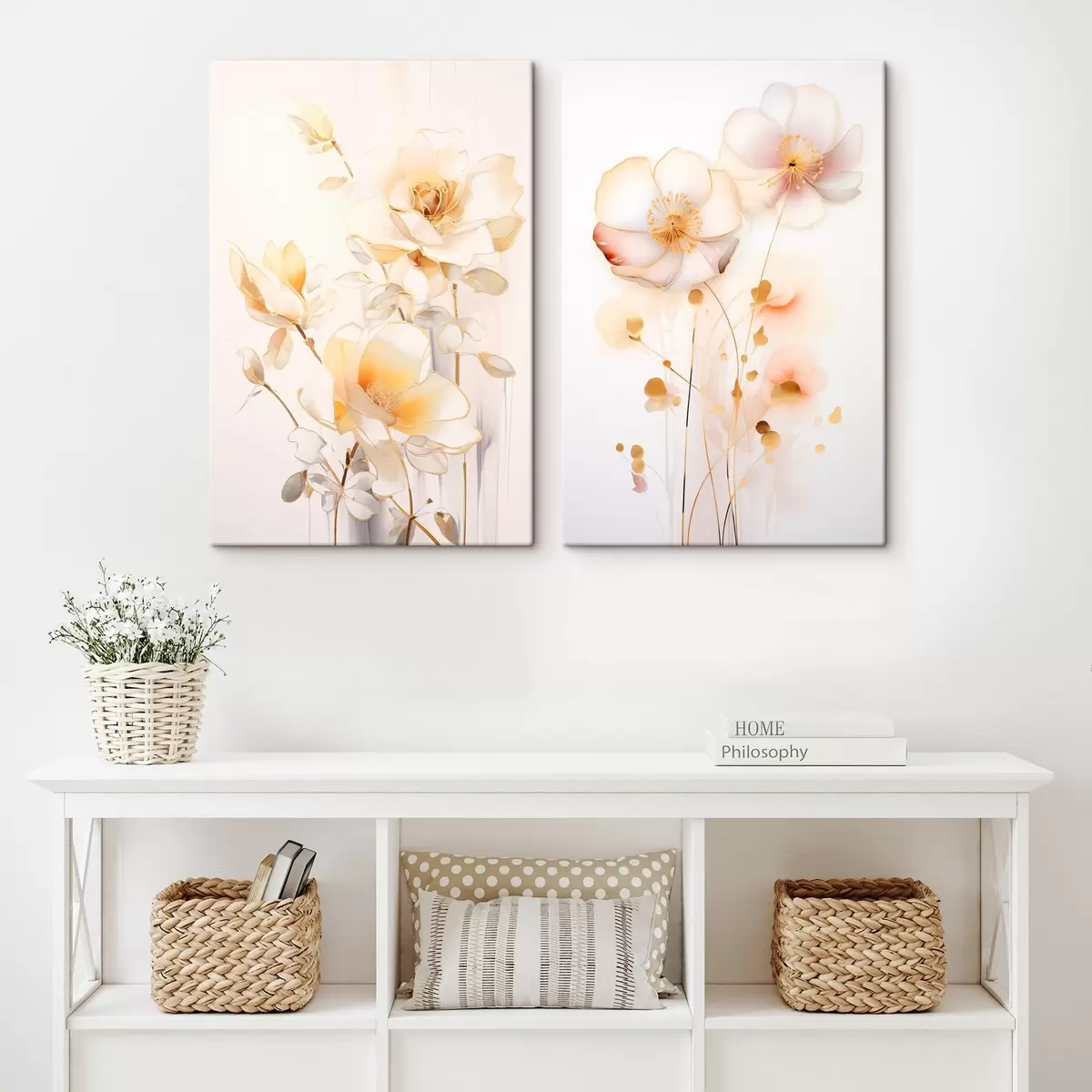 Quadri Duetto floreale: dittico delicato in stile acquerello dalle linee eleganti Nr m00577