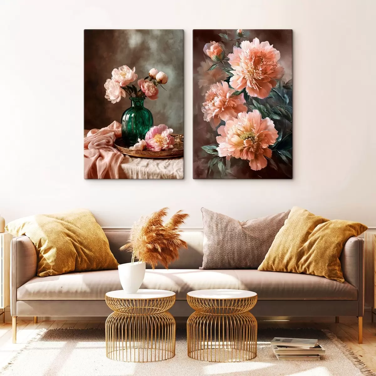 Quadri Composizione abbinata con peonie rosa in vaso e su tela Nr m00578