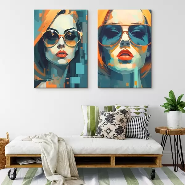 Quadri Ritratti femminili con occhiali nello stile dell'astrazione digitale Nr m00587
