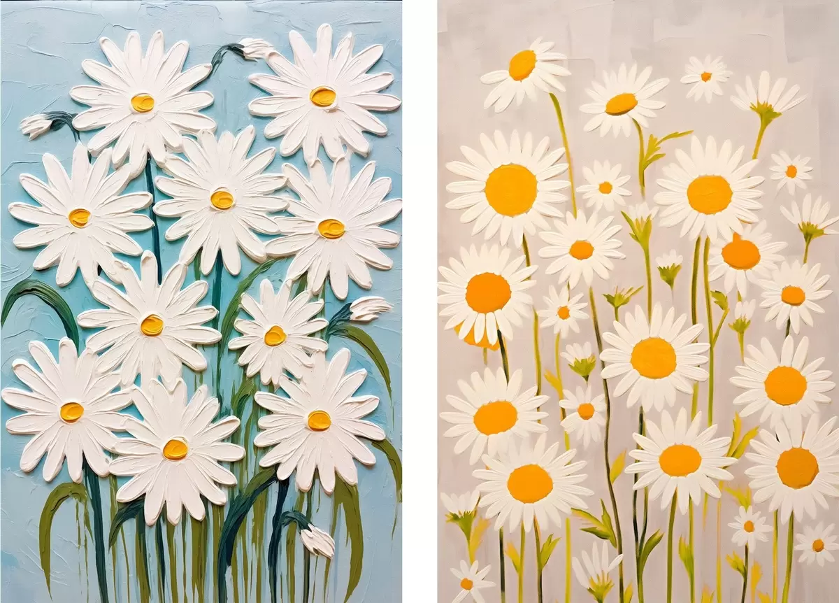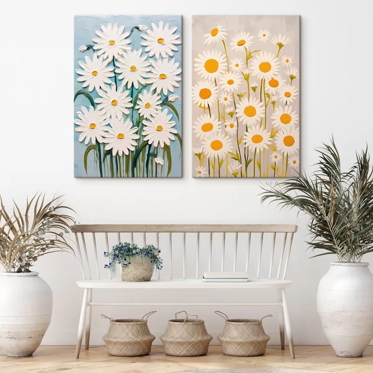 Quadri Freschezza primaverile: dittico con margherite voluminose in stile impasto Nr m00633