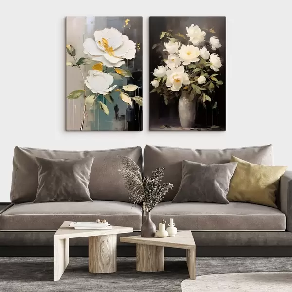 Quadri Peonie bianche su sfondo scuro: composizione decorativa Nr m00634