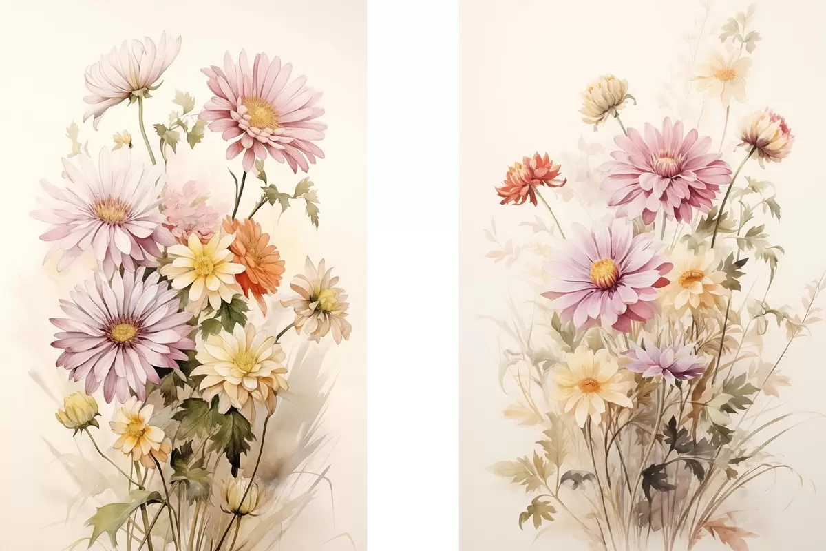 carta da parati Un bouquet di fiori colorati, stile acquerello morbido, su uno sfondo chiaro, illustrazione botanica nr. m00649