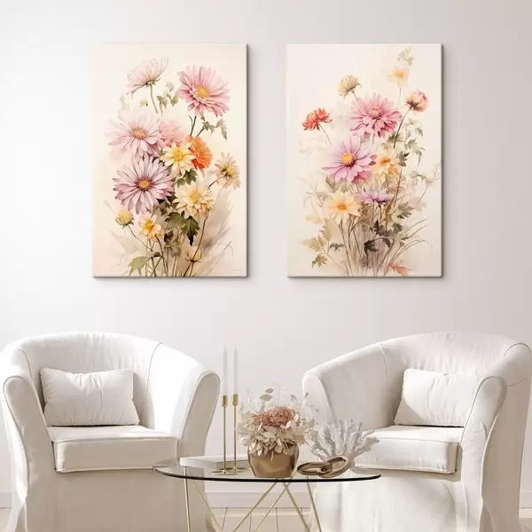 Quadri Un bouquet di fiori colorati, stile acquerello morbido, su uno sfondo chiaro, illustrazione botanica Nr m00649