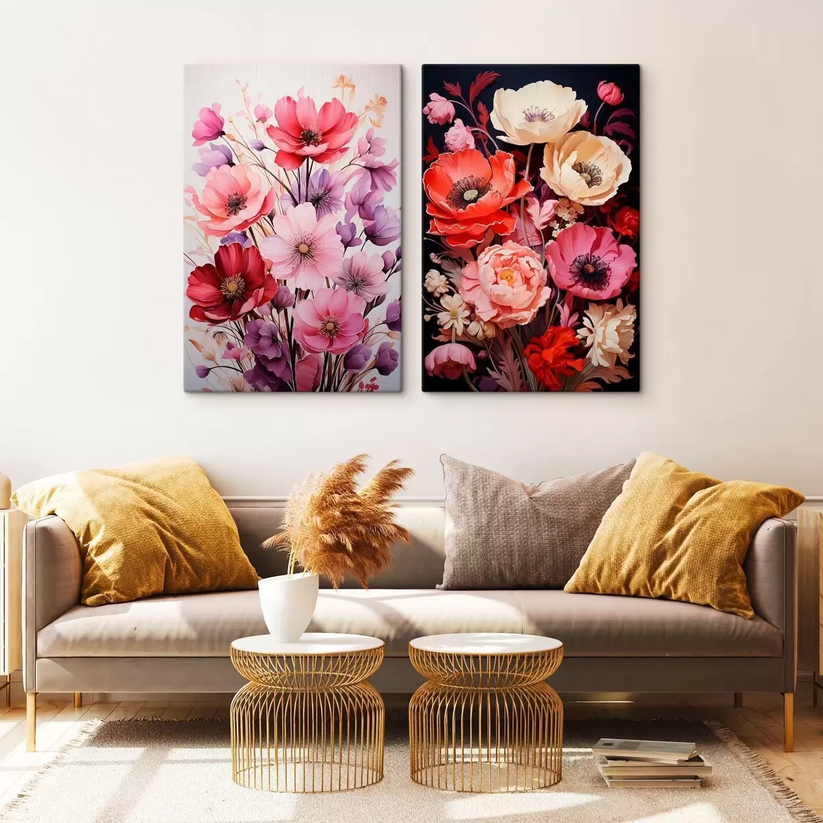 Quadri Bouquet di papaveri in tonalità pastello e ricche Nr m00661