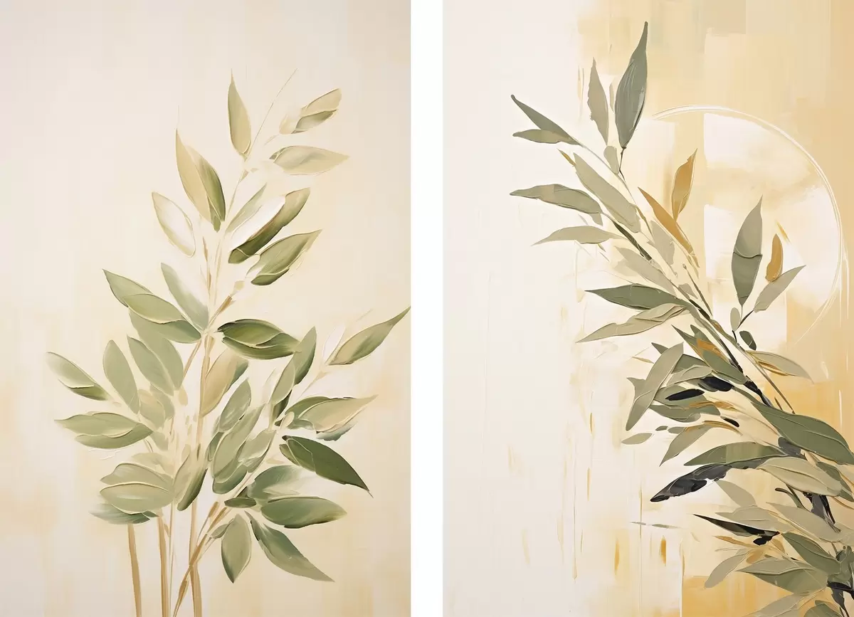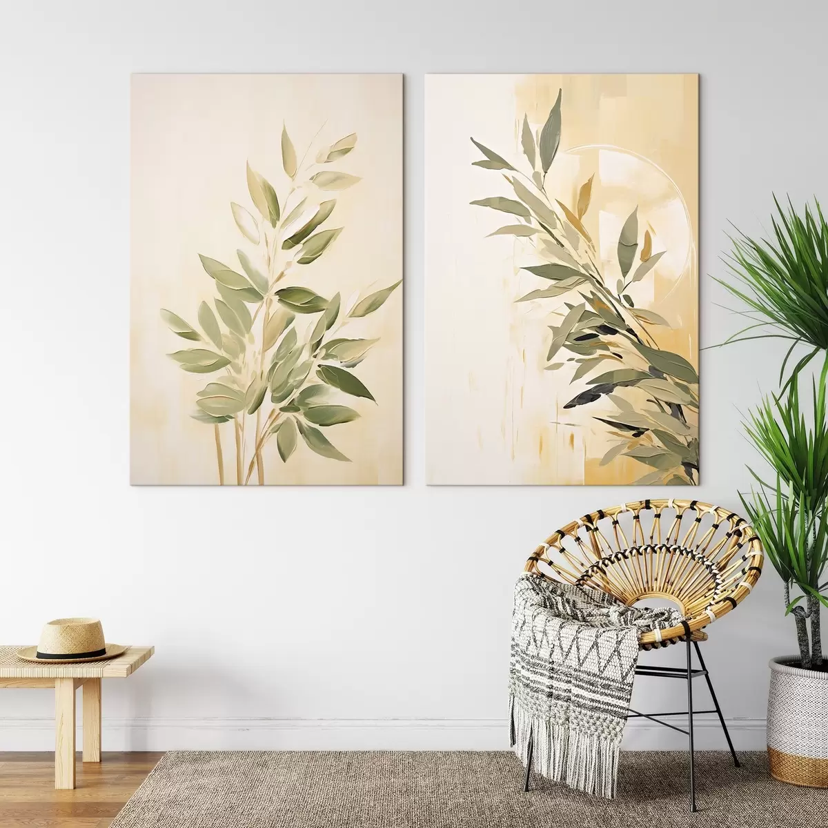 Quadri Ramo botanico con foglie verdi su sfondo caldo Nr m00686