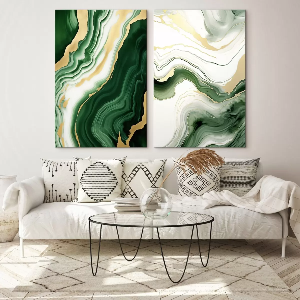 Quadri Texture di marmo verde e bianco con venature giallo-arancio Nr m00688