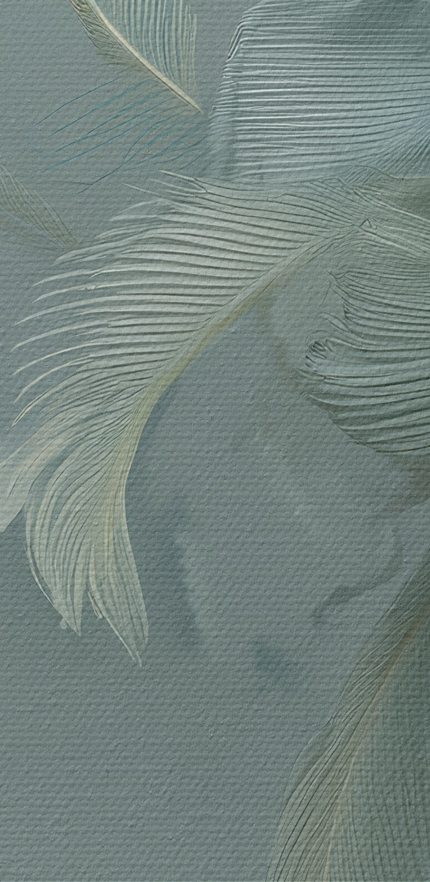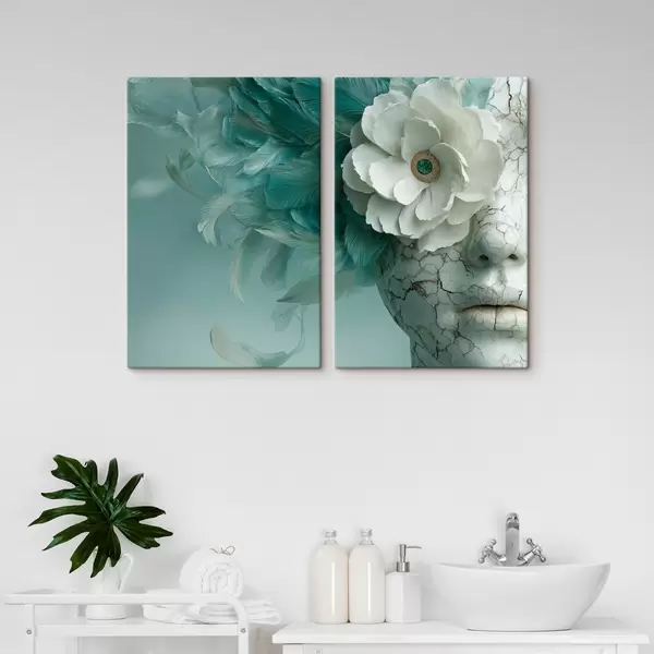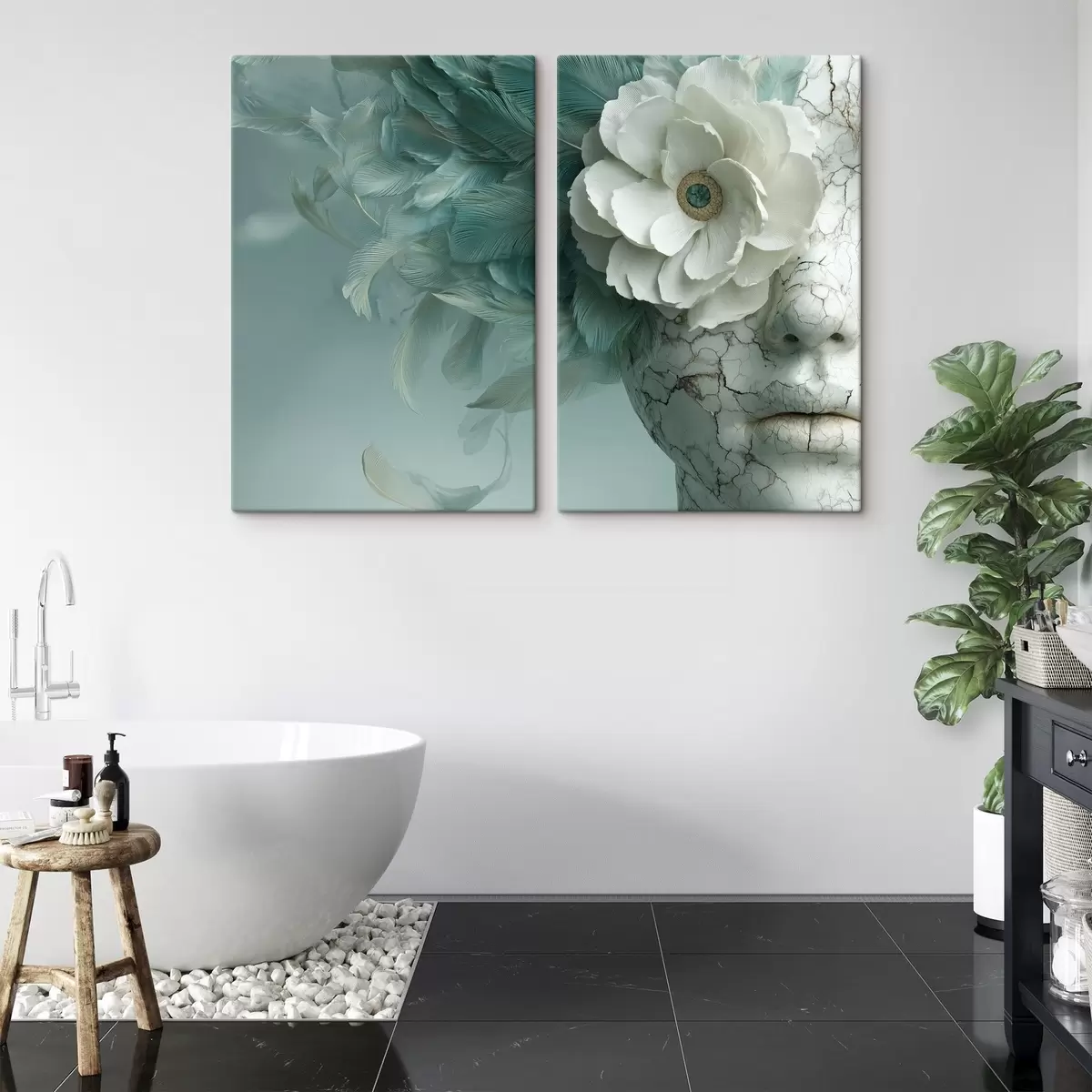 carta da parati faccia di marmo di una ragazza con un fiore e delle piume nr. m00699