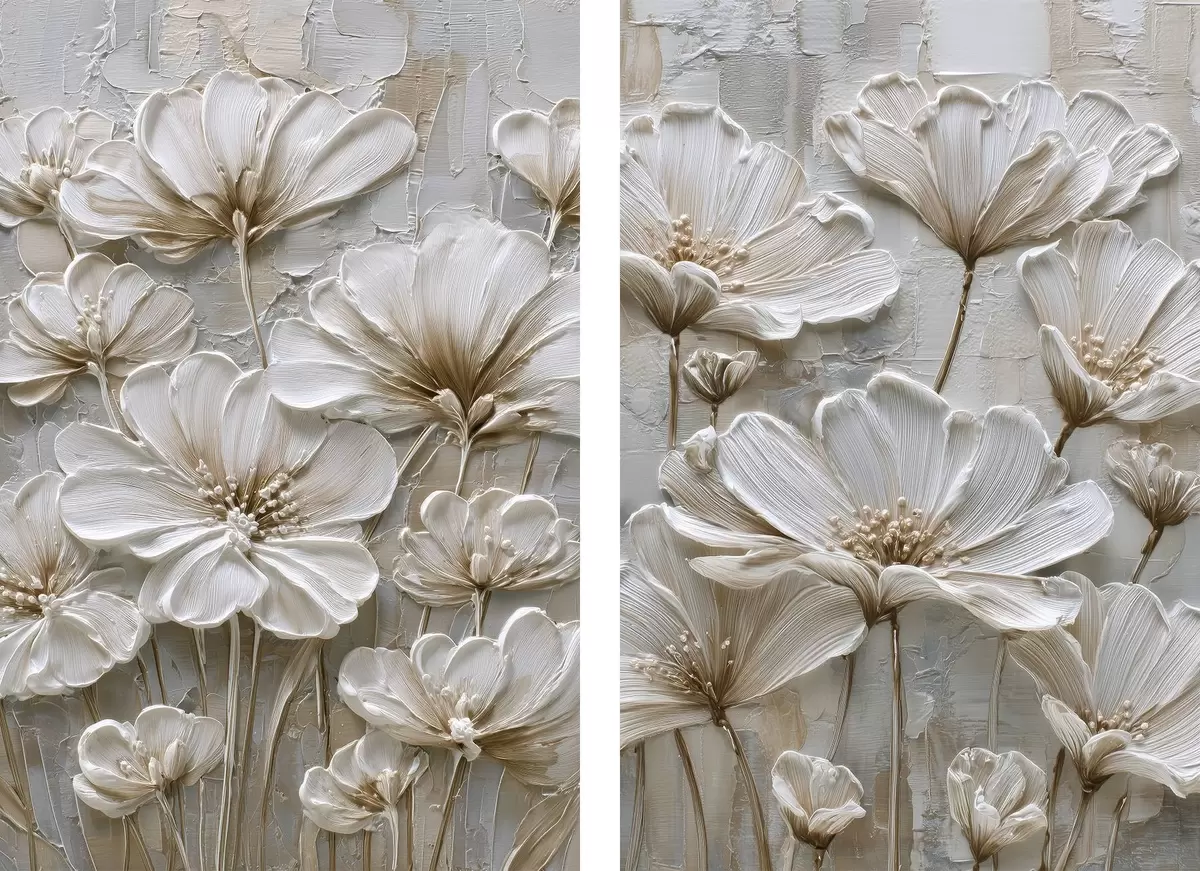 carta da parati fiori color crema con effetto impasto nr. m00701