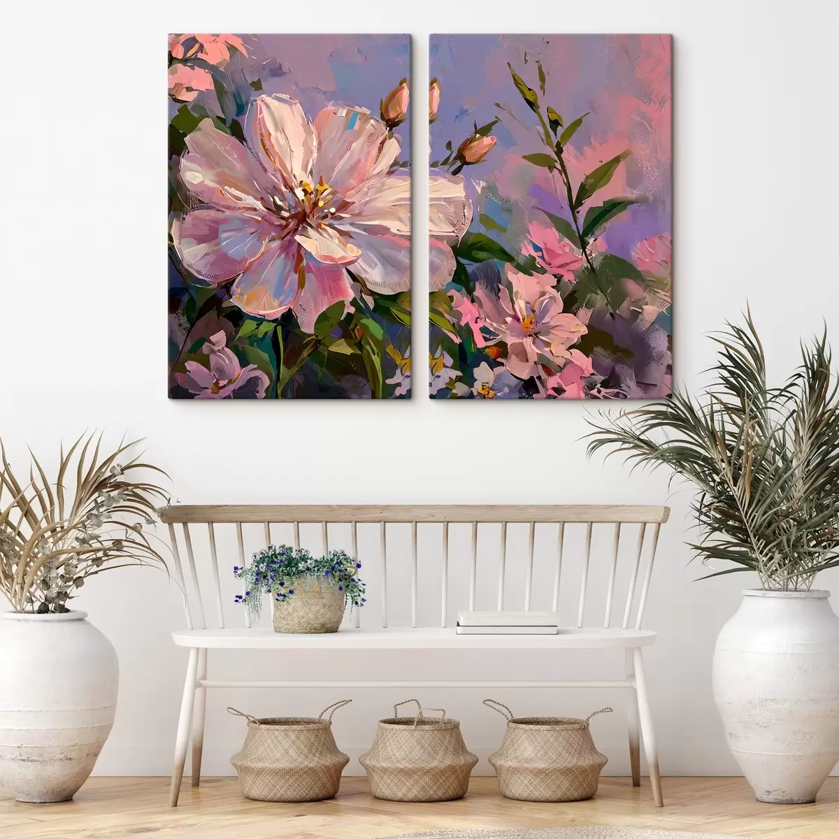 Quadri fiori rosa in stile pittura a olio Nr m00706