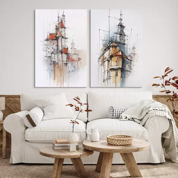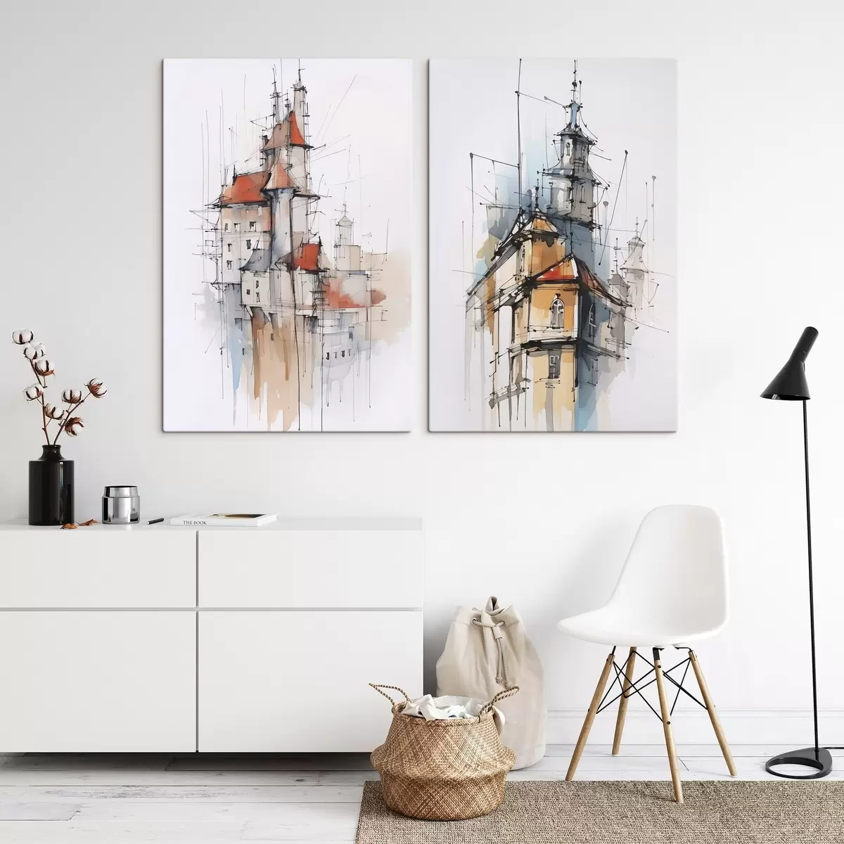 Quadri Case schizzo imitazione e acquerello Nr m00725