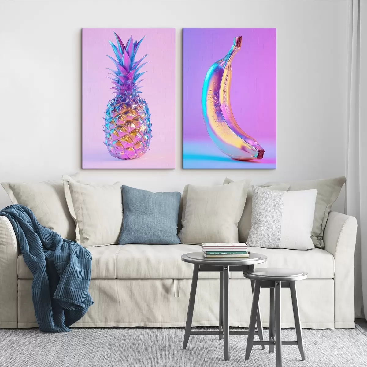 Quadri ananas e banana luminosi e lucidi in stile pop art Nr m00737