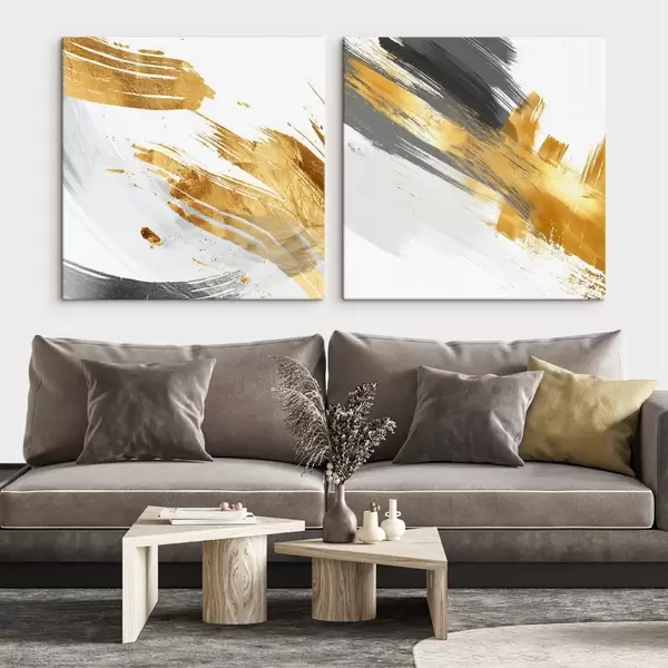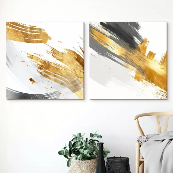 Quadri Astrazione dinamica con tratti gialli e grigi Nr m00748