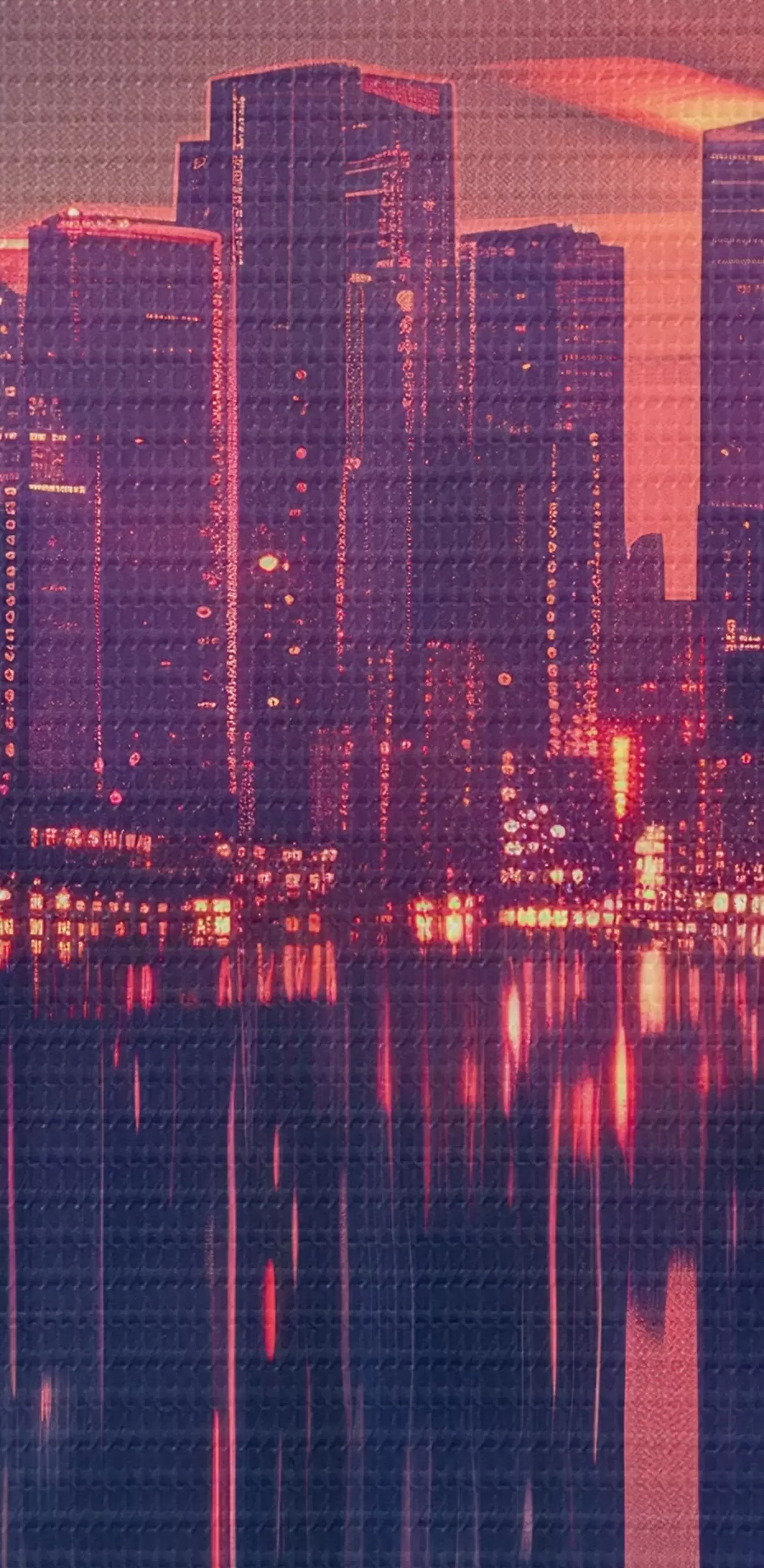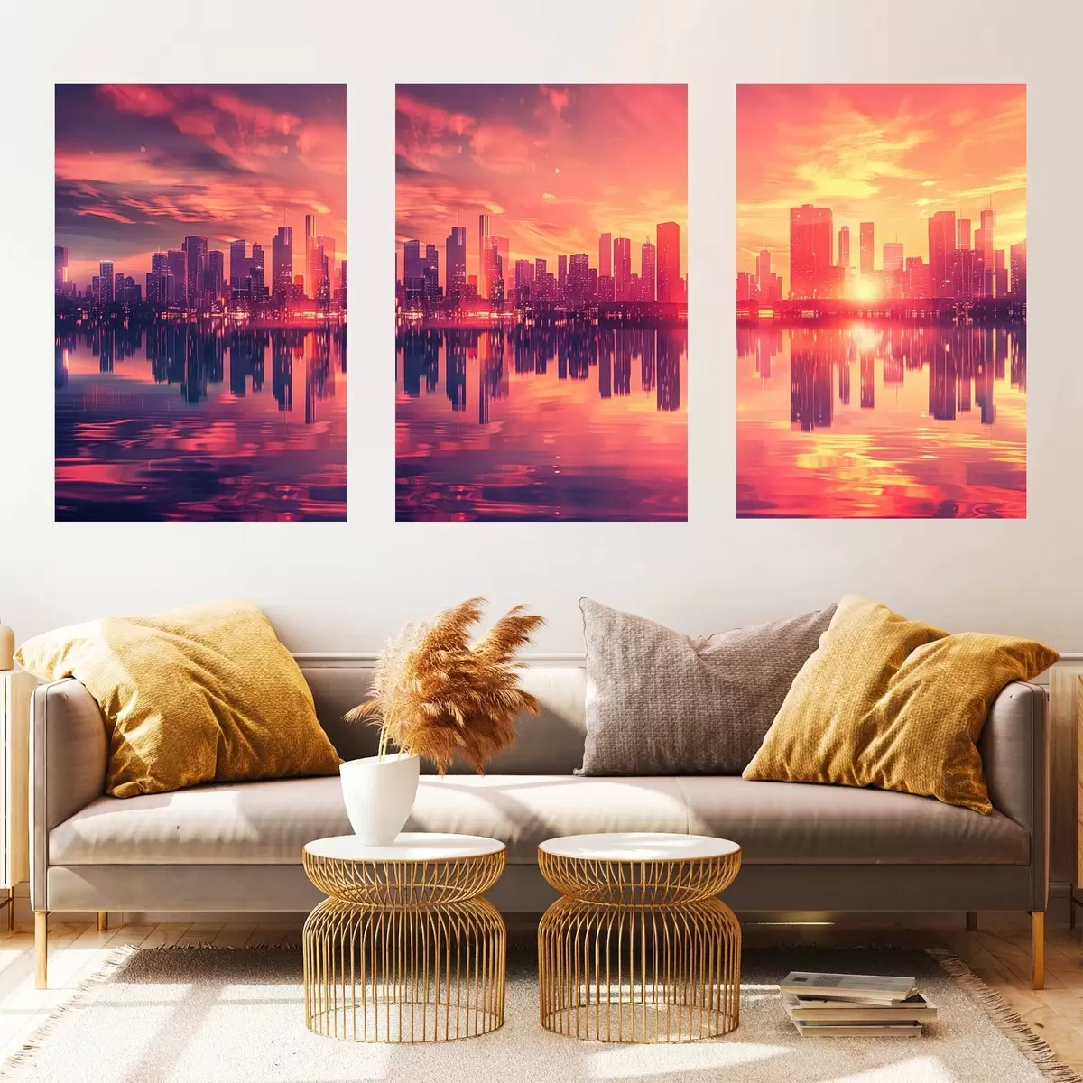 Quadri Romantico tramonto con una città moderna sullo sfondo Nr m00784