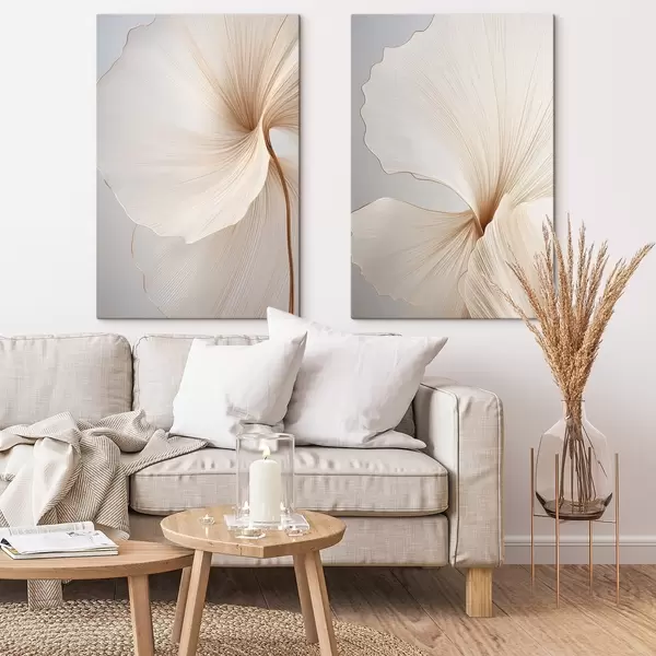 Quadri Fiori astratti con petali sottili e delicati nei toni del bianco e del beige Nr m00817