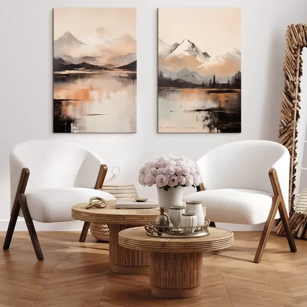 Quadri Un dipinto con texture paesaggistica che imita montagne e un lago Nr m00831