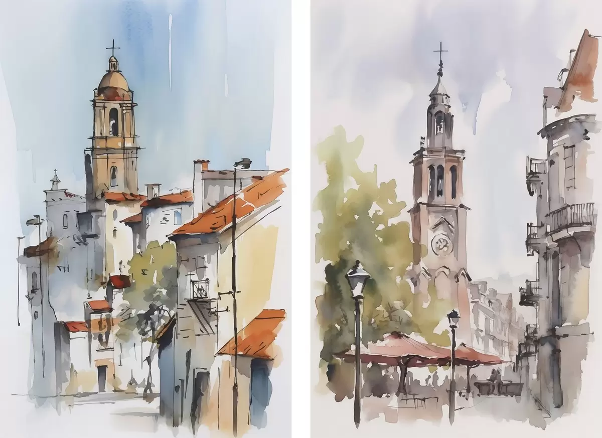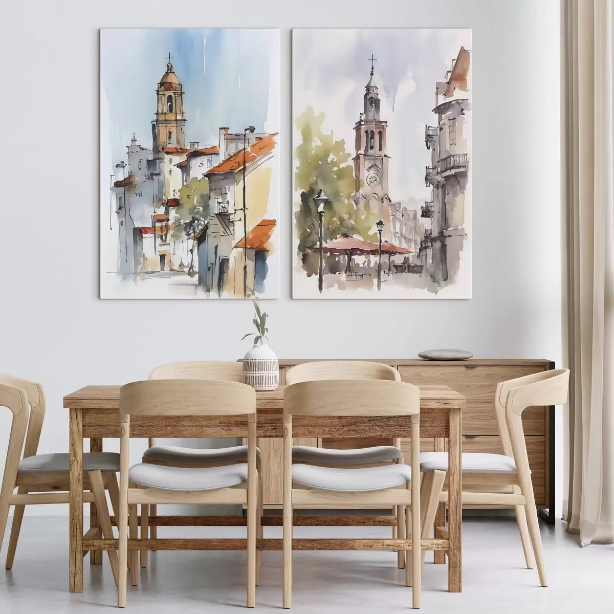 Quadri Acquerello che imita il paesaggio urbano Nr m00832