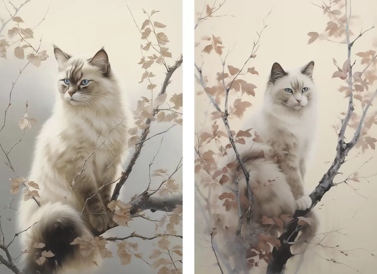 Quadri Un gatto su un ramo di un albero Nr m00871