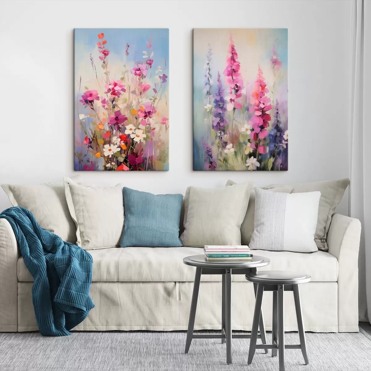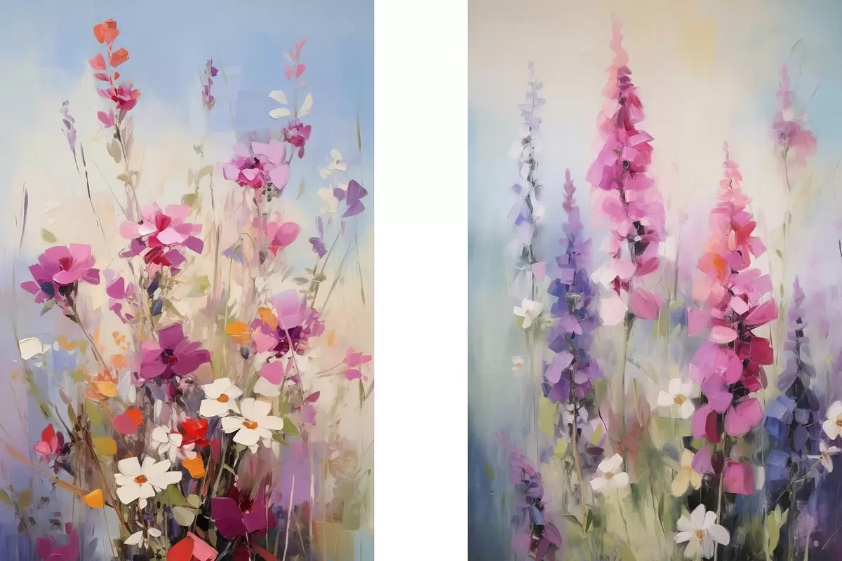 Quadri Fiori vivaci con margherite bianche in un campo, pennellate morbide, colori pastello, stile impressionista Nr m00882
